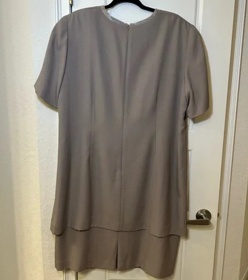 Evan Picone Gray 18W Dress w Beaded Neckline, Mother of the Bride or Groom