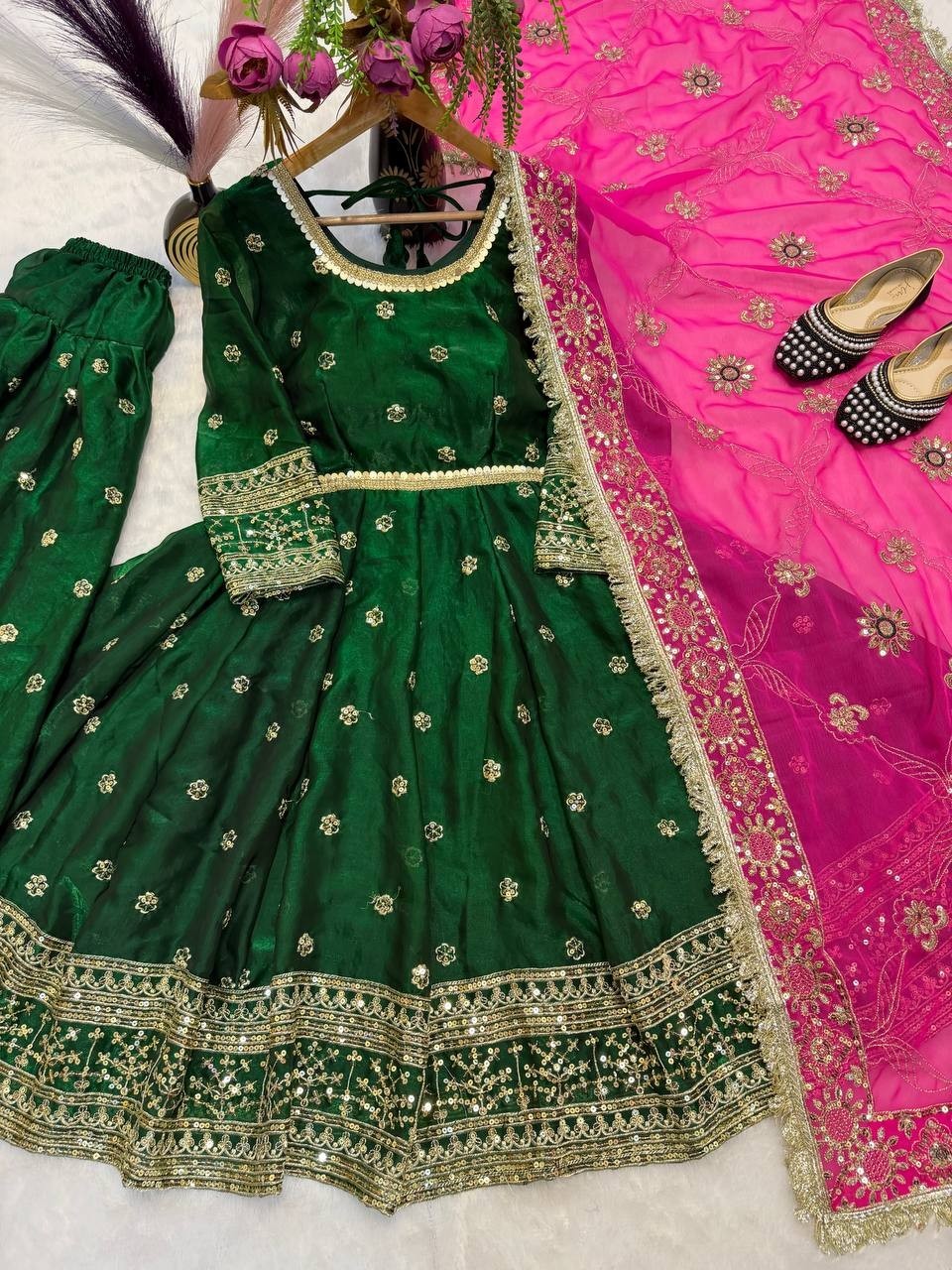 как выглядит Beautiful Green Fandy Silk Salwar Kameez With Faux Georgette Dupatta For Women фото