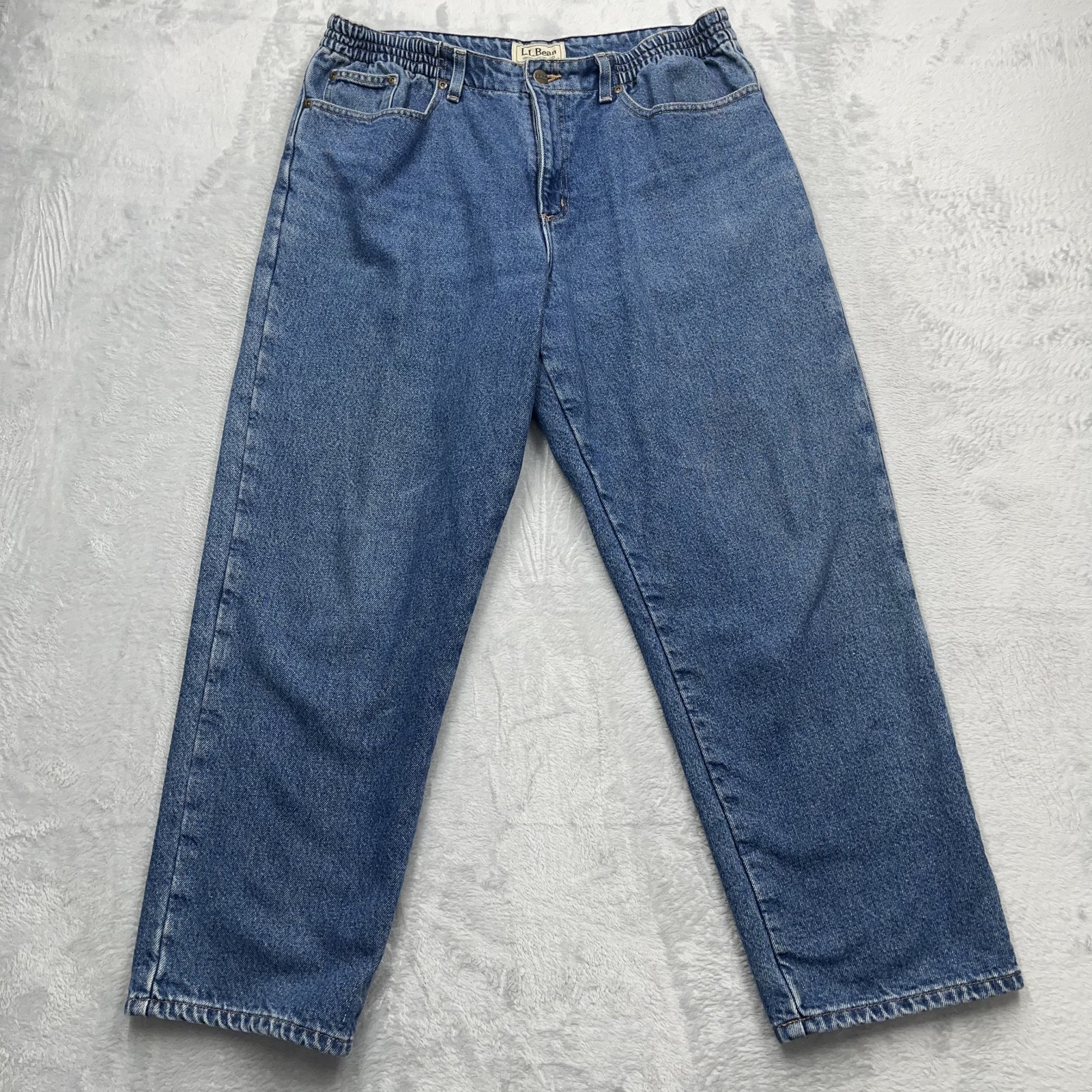 как выглядит Vintage LL Bean Womens Jeans Lined Red Plaid Flannel Lining Size 16 Petite фото
