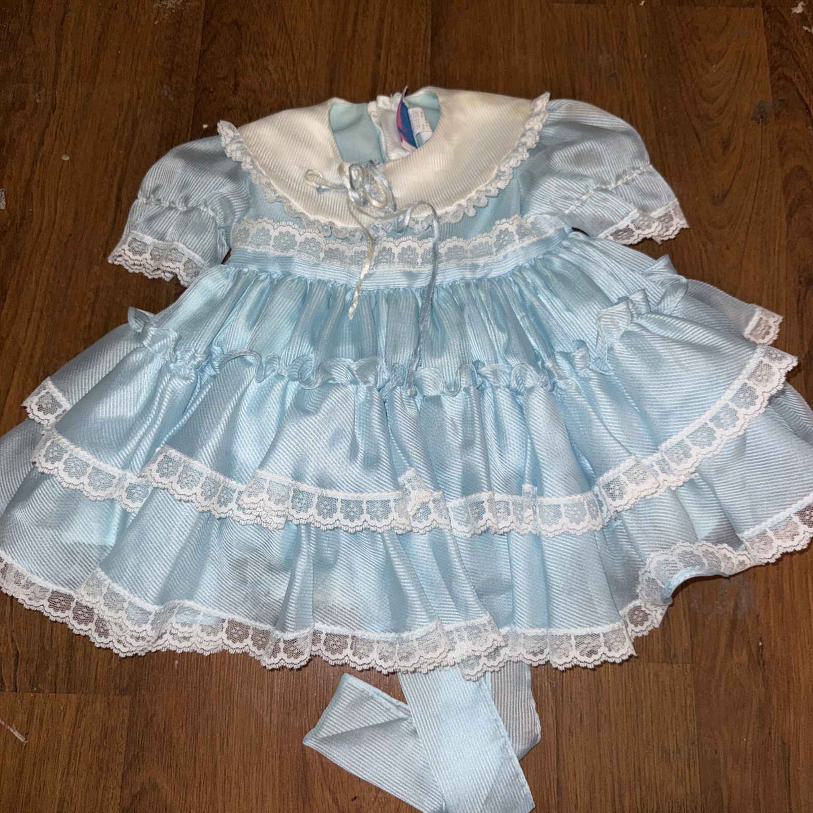 как выглядит Vintage girl dress Martha s Miniatures 3T Baby Blue Ruffles фото