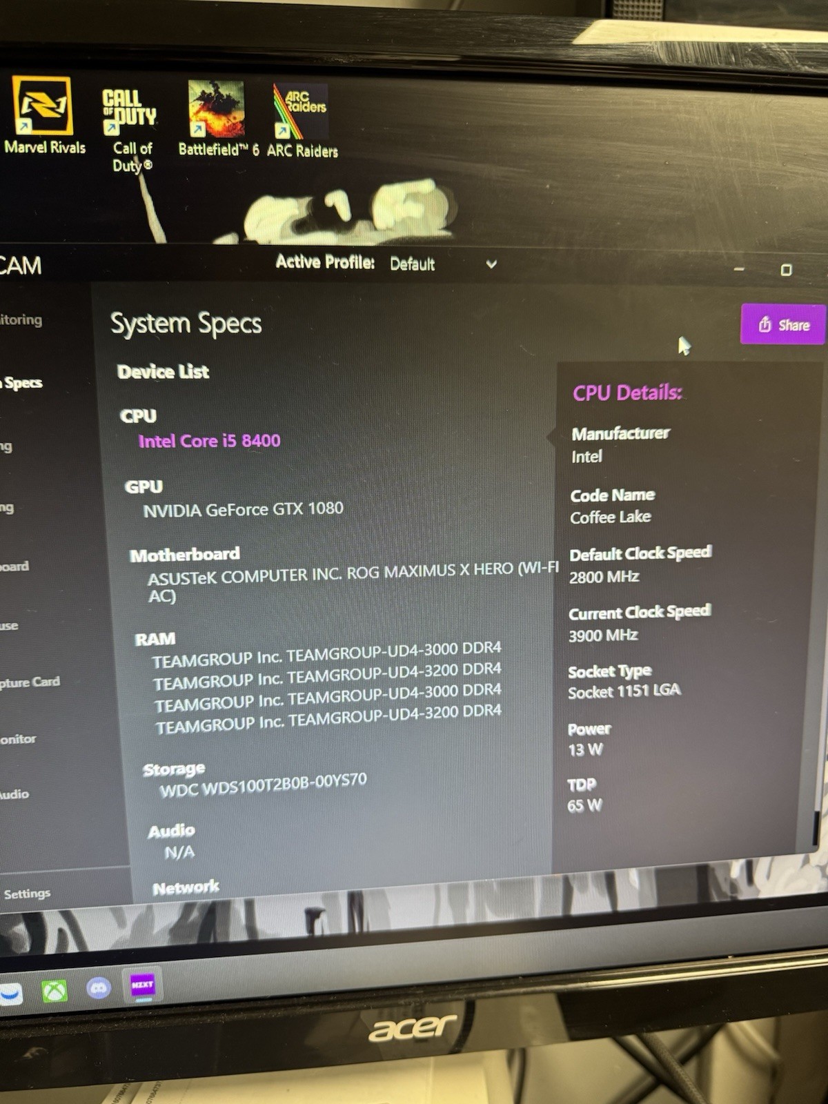Motherboard Model: Asus Rog Maximus X Hero