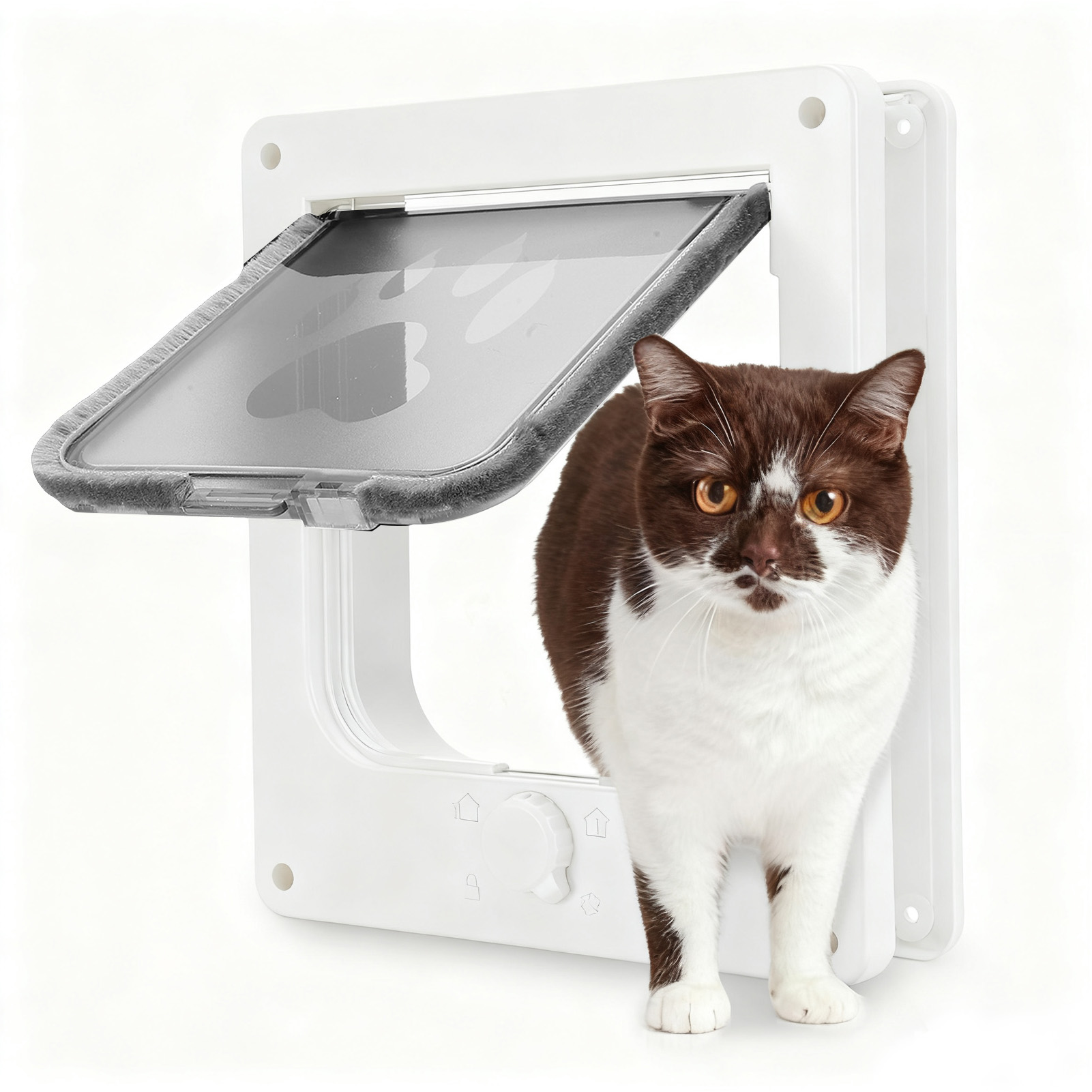 Magnetic Cat Door For Interior Doors - 4-Way Lock For Pets Under 25lbs