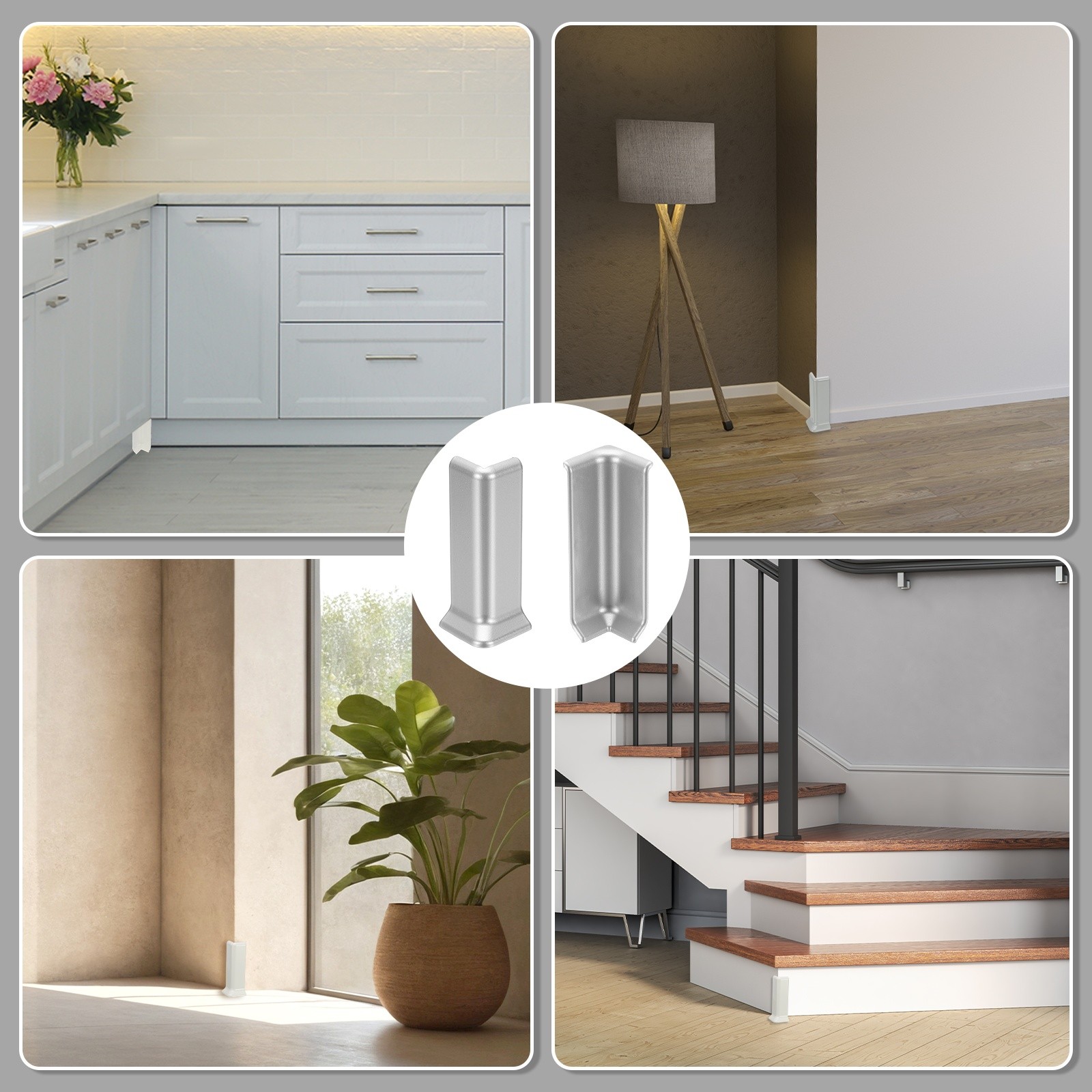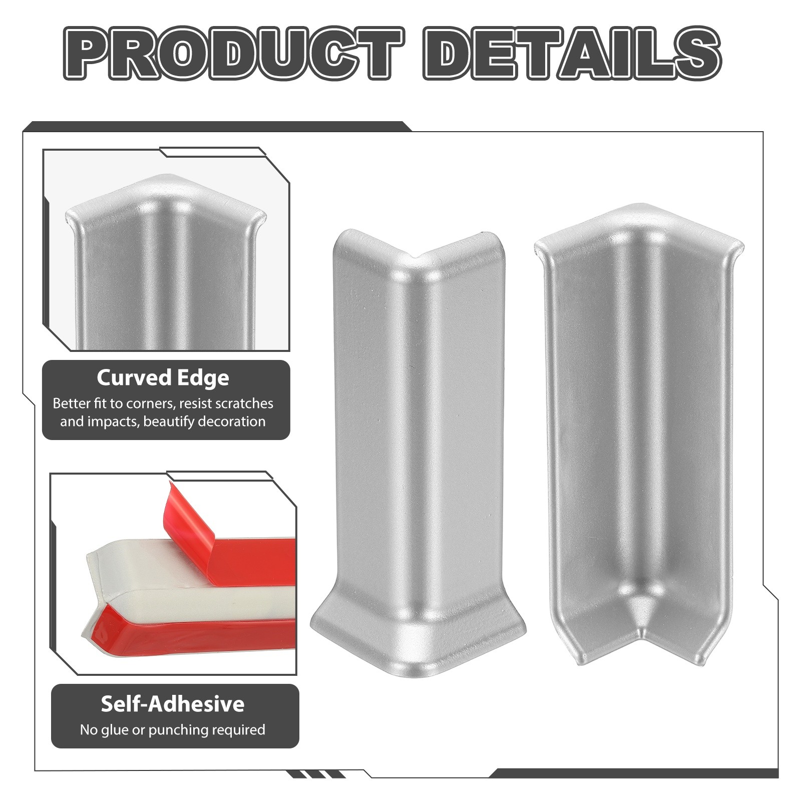 как выглядит 4.07 Inch 2 Inside 2 Outside Self Adhesive Baseboard Corner Blocks Silver фото