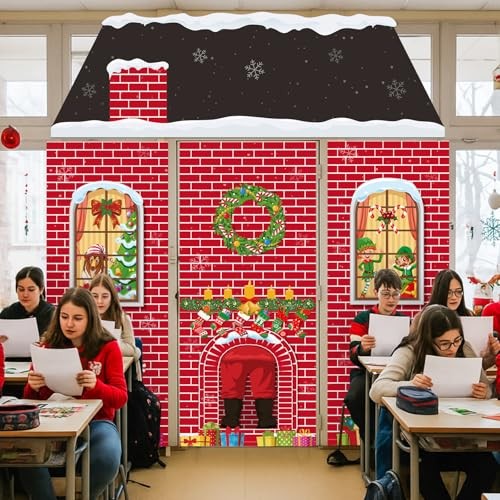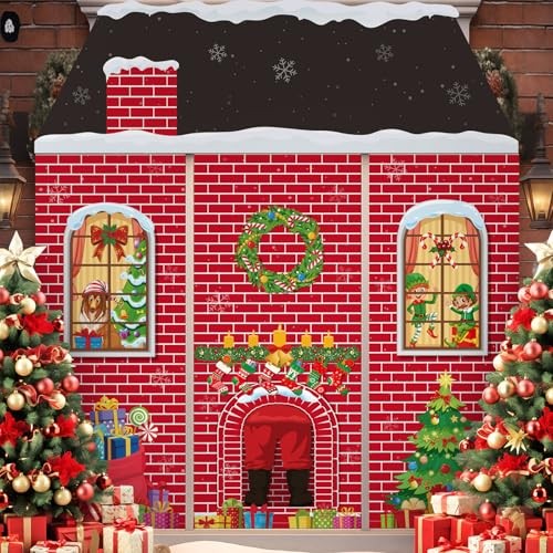 4 Pcs Christmas Door Decorations Set Xmas Holiday Door Covers Fireplace