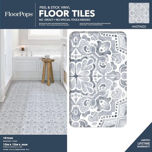Hastings Peel Stick Floor Tiles, Blue 12-in by 12-in