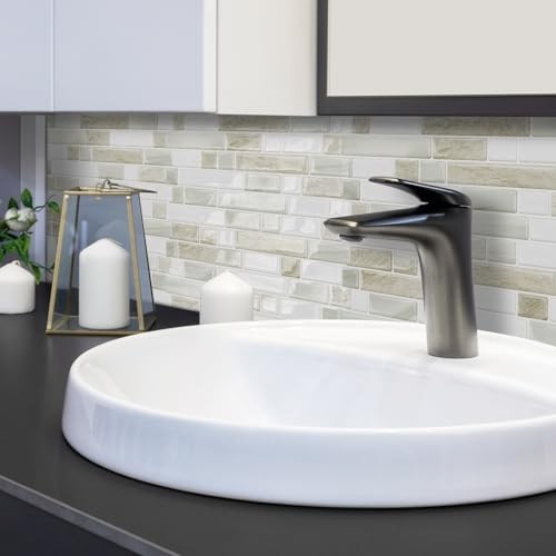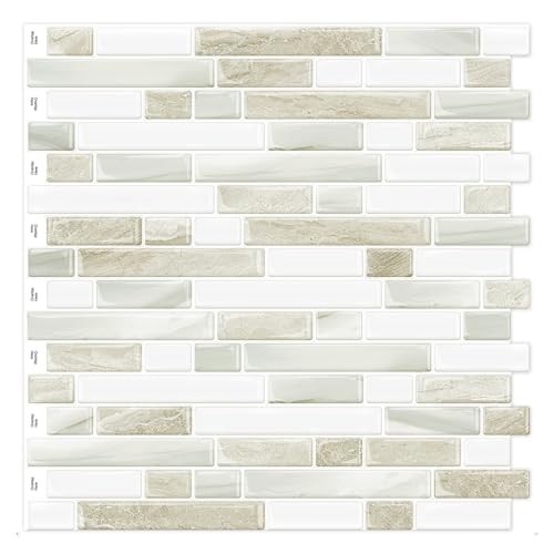 Sheets Peel and Stick Backsplash for Kitchen,12''x12'' 10 Marble Beige white