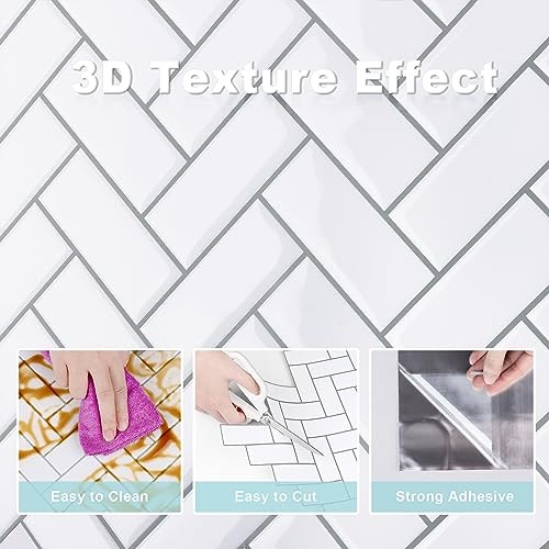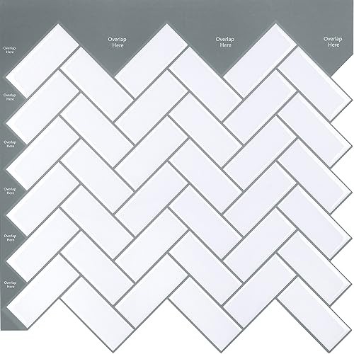 Herringbone 3D Peel and Stick Backsplash Tile - 10 3 lines herringbone White