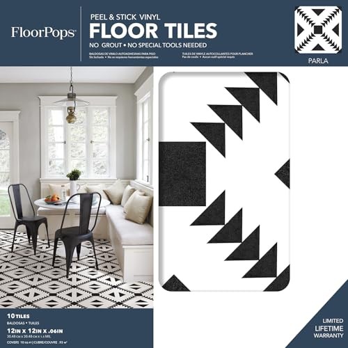 Parla Peel Stick Floor Tiles, Black 12-in by 12-in
