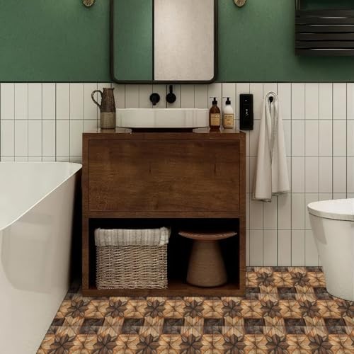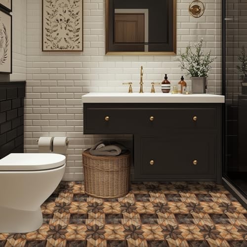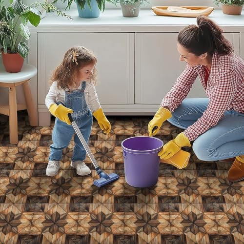 10PCS Pattern Peel and Stick Floor Tiles Removable 12x12 Inch Wood Look Star