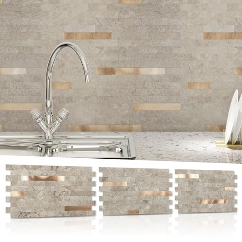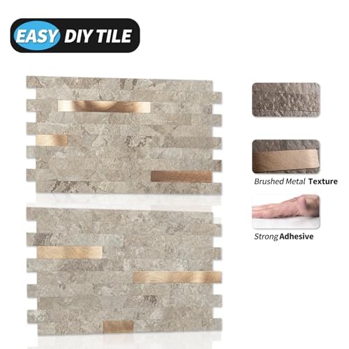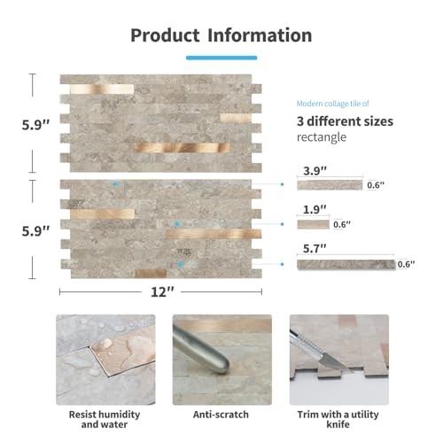 -Sheet Peel and Stick Collage Tile for Kitchen 5.9 x 12 20 Ecru Slate