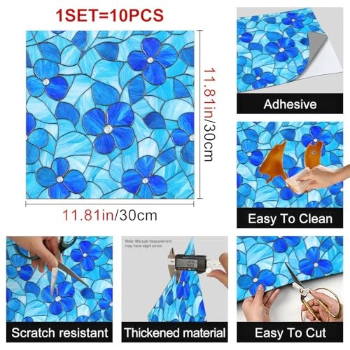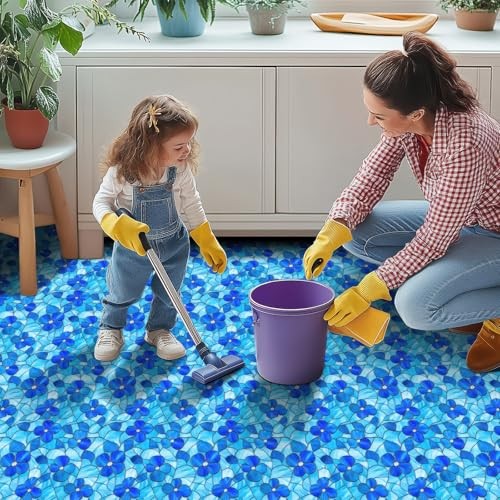 10PCS 12x12 Inch Blue Floral Textured Flat Surface Floor Tiles Peel and Stick