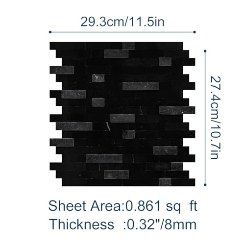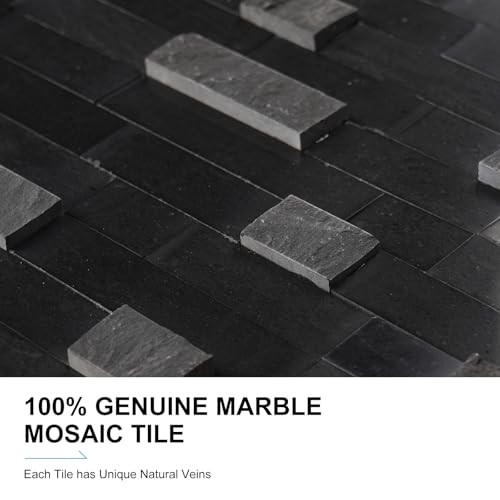 5-Sheet 3D Natural Stone Mosaic Tiles, 12x11 Peel and Stick Mixed Black