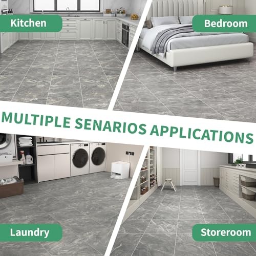 -Pack Peel and Stick Floor Tiles Vinyl Floor 12 12x12 Inch 20 Dark Grey Marble