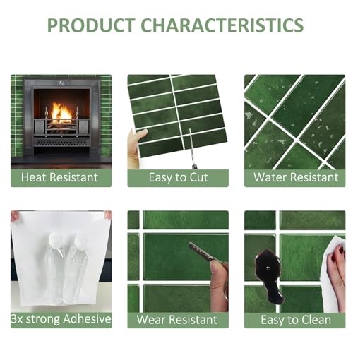Peel and Stick Backsplach Tile, 12x12 Back Splash Stick on Tiles Dark Green