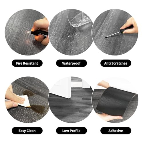 Peel and Stick Floor Tile, Self Adhesive Waterproof 36x6x0.06 12 Grey Oak