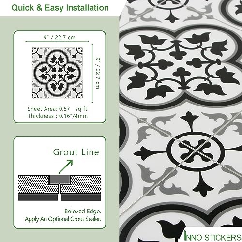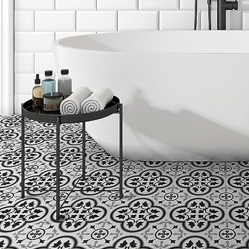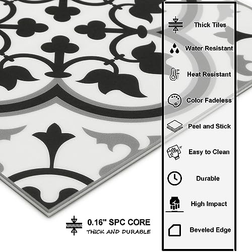 Peel Stick SPC Vinyl Self-Adhesive Flooring - 9x9In 16 Tiles 16 Black/White