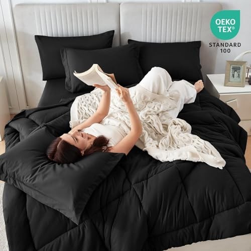 Comforter Set 7 Pieces Bed in a Bag Complete Bedding Set Includes Queen Black