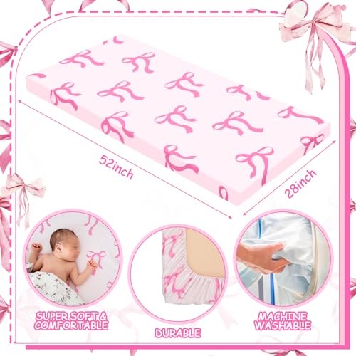 4 Pack Coquette Pink Bows Baby Crib Fitted Sheet 52'' x 28'' Pink Bows Fitted