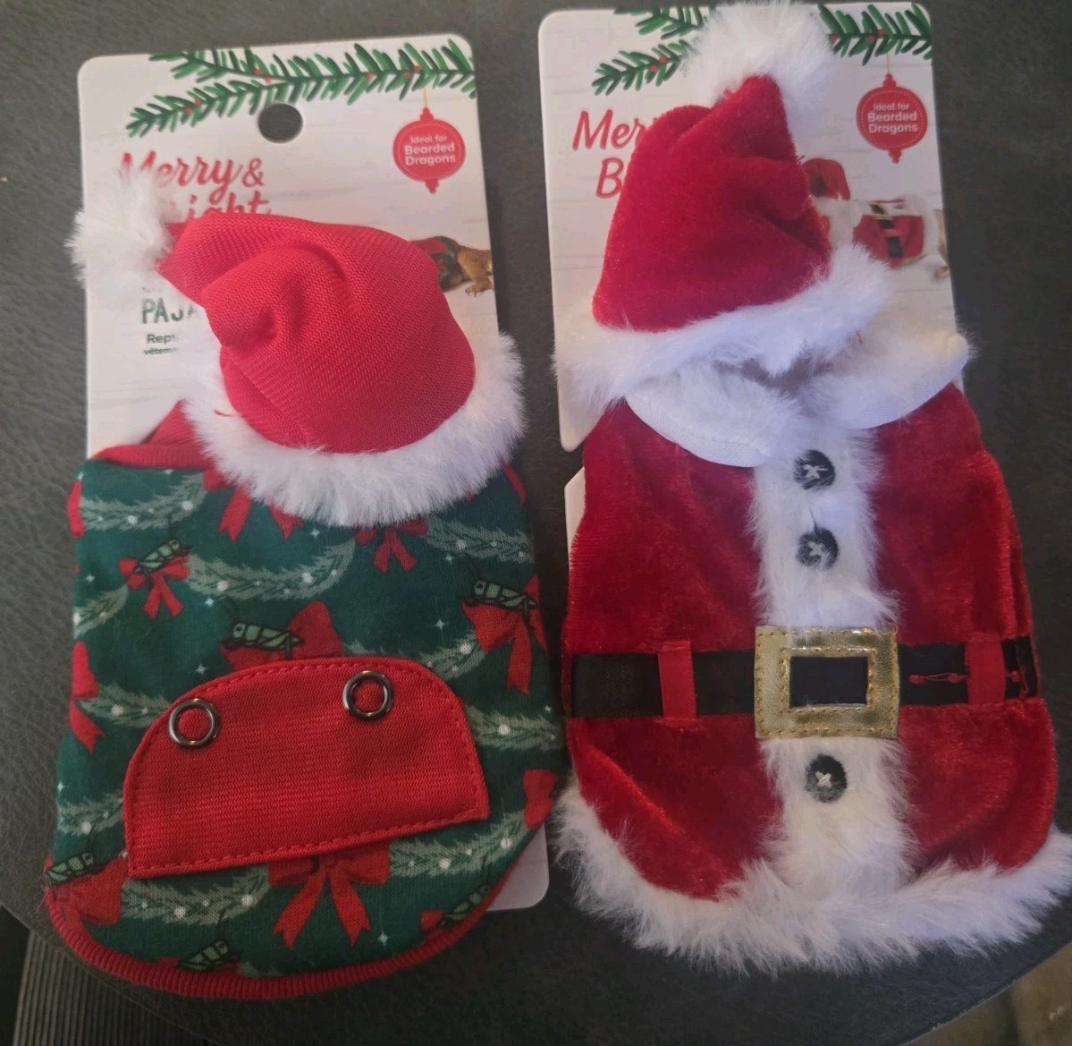 2 Pack MERRY BRIGHT SANTA REPTILE COSTUME NIP IDEAL FOR BEARDED DRAGONS
