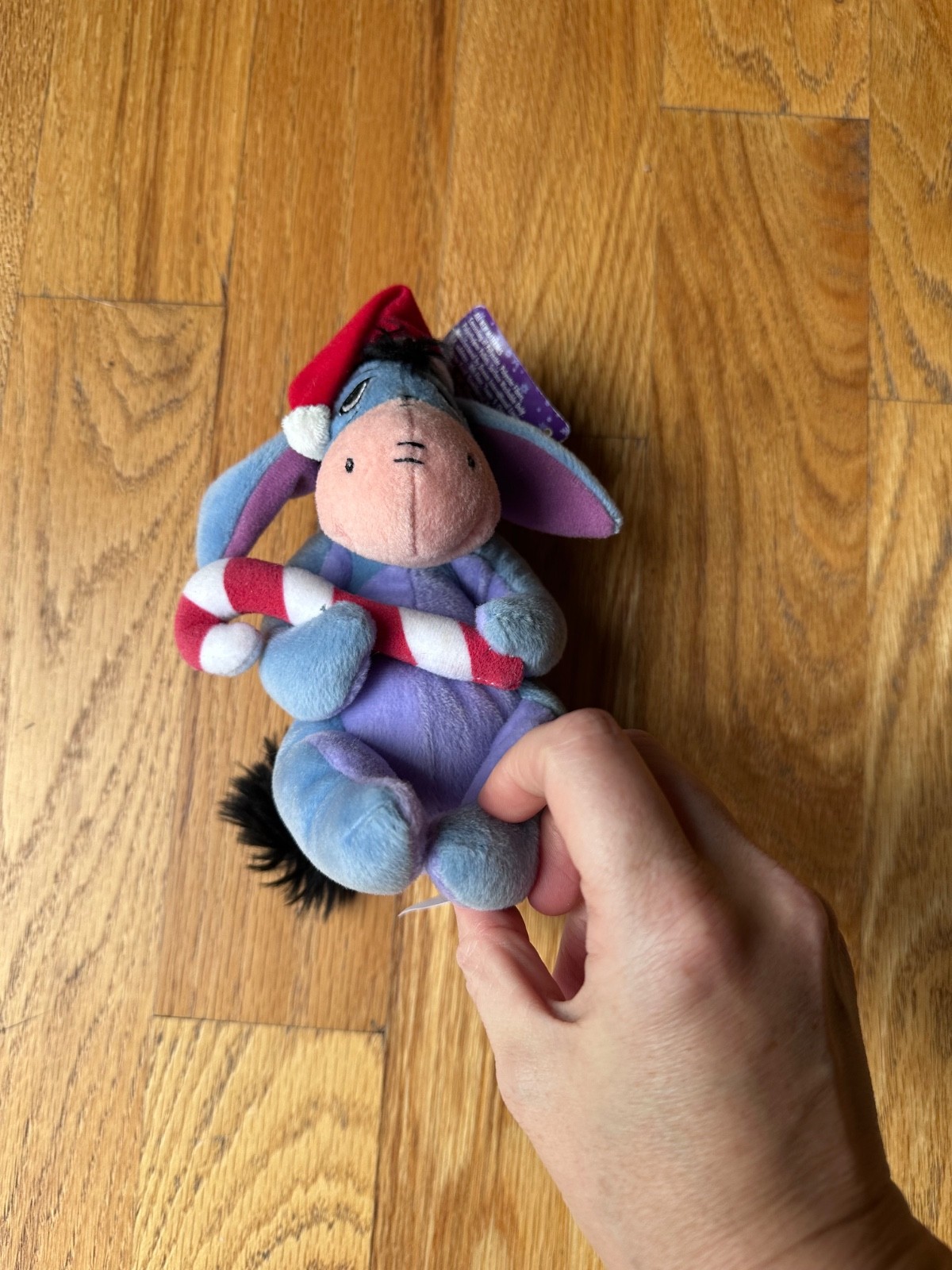 как выглядит Winnie the Pooh Christmas Eeyore with candy cane Plush with Tags Disney фото