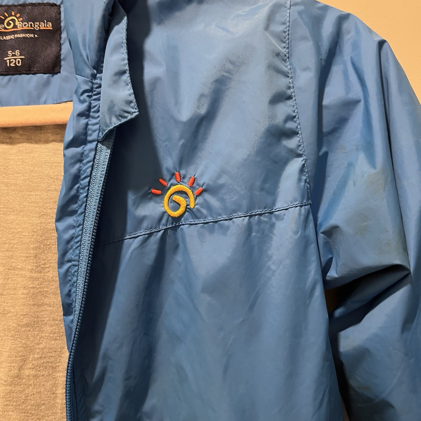 Jingle Bongala Kids Blue lightweight waterproof rain jacket Full Zip Size 5-6