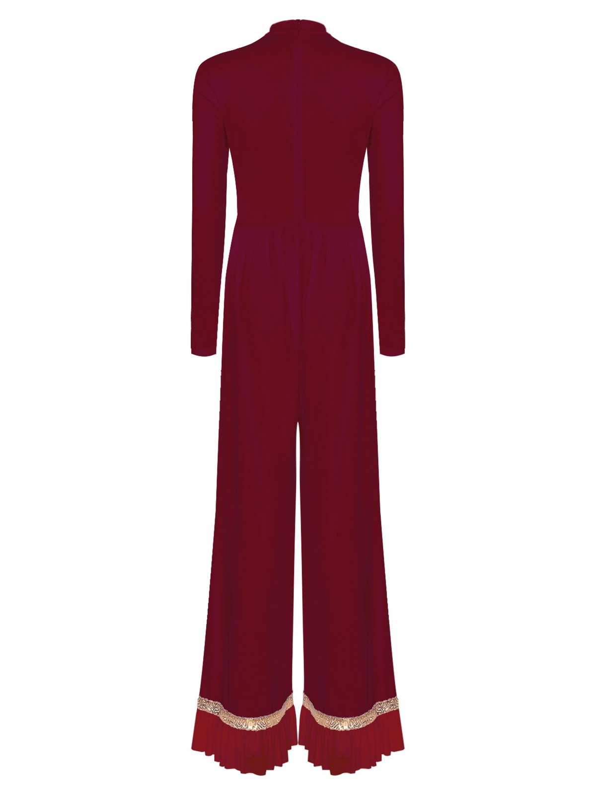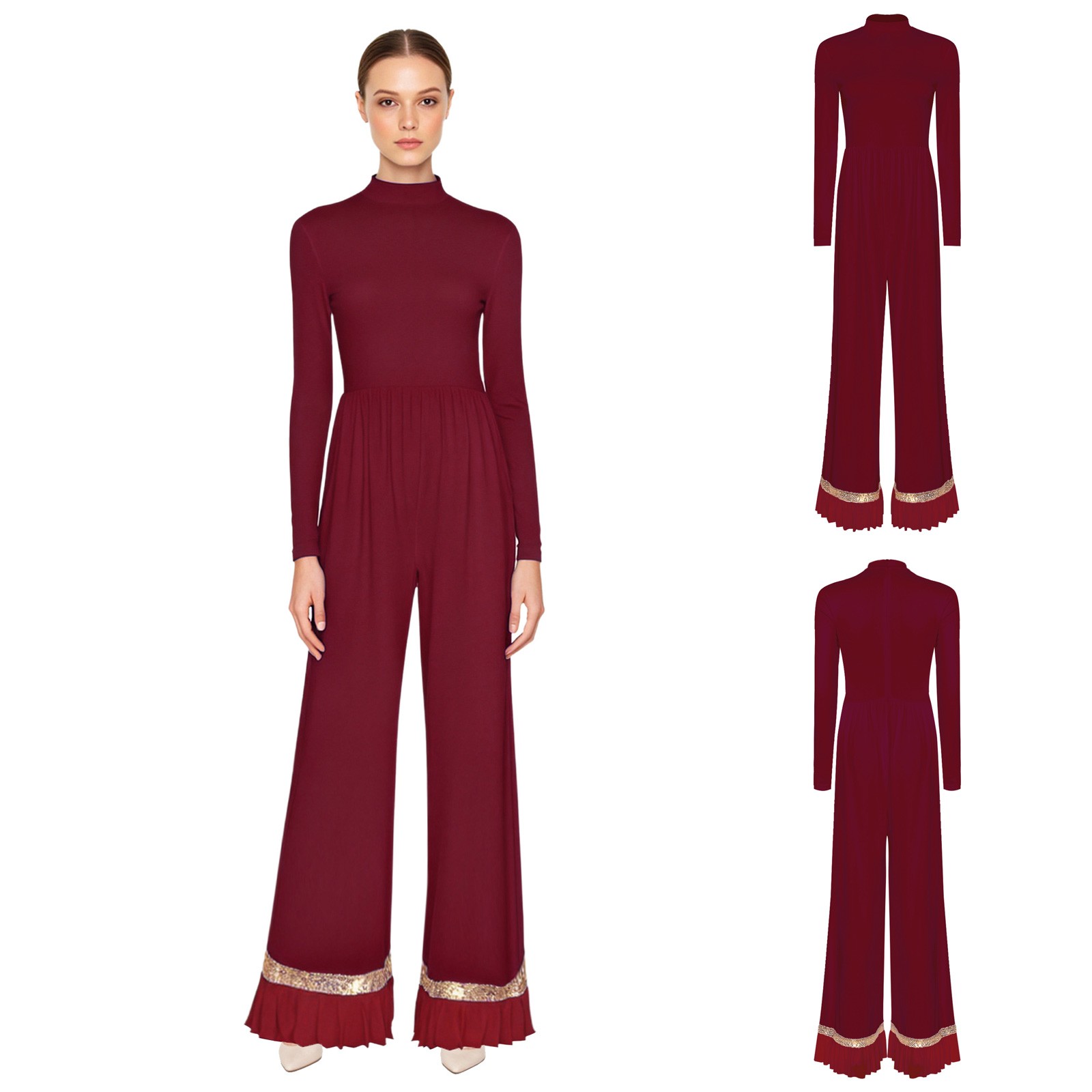 Womens Jumpsuit Zip-up Rompers Shiny Dancewear Competitions Worship One-piece