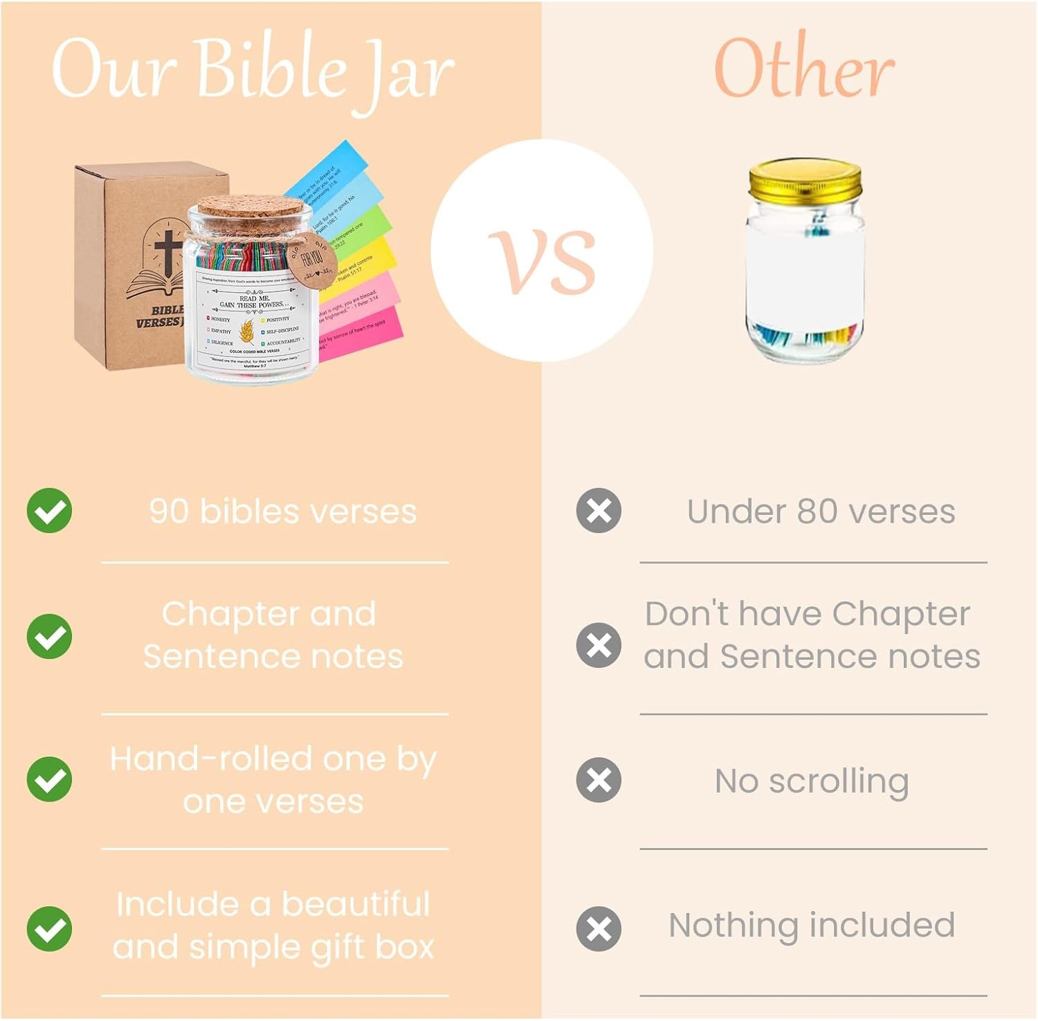 Included Components: 90 verse cards gift box hang tag ribbon bible verse jar