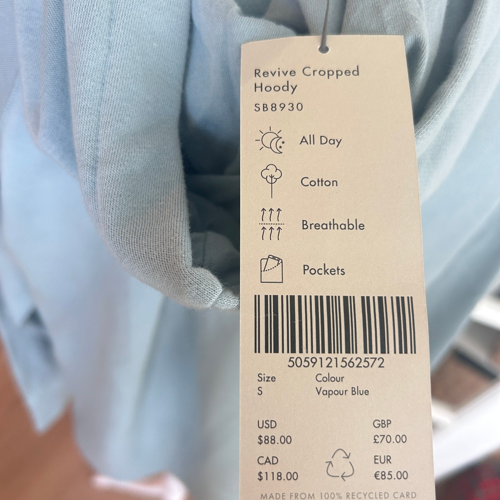 как выглядит Sweaty Betty London Vapour Blue Revive Cropped Hoody Womens Size Small NEW фото