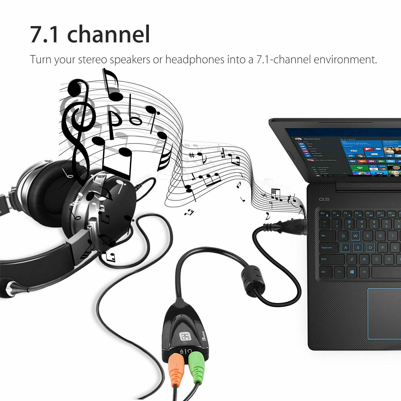 USB 2.0 External 7.1 Channel Sound Card 3.5mm Stereo Headphone Adapter Laptop PC
