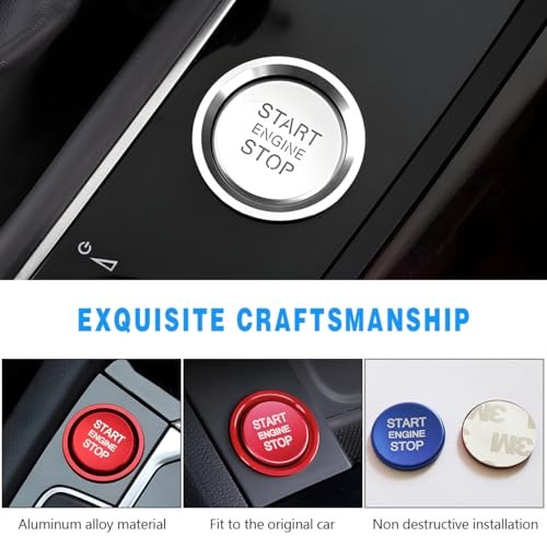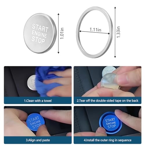 Car Engine Start Stop Push Botton Cover, Alumninum Vehicle Key Ignition Silver