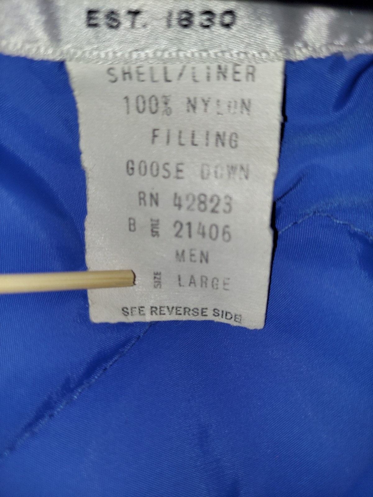 как выглядит Vintage Woolrich Button-Down Goose Down Jacket Mens Vest Size Large Blue/white фото