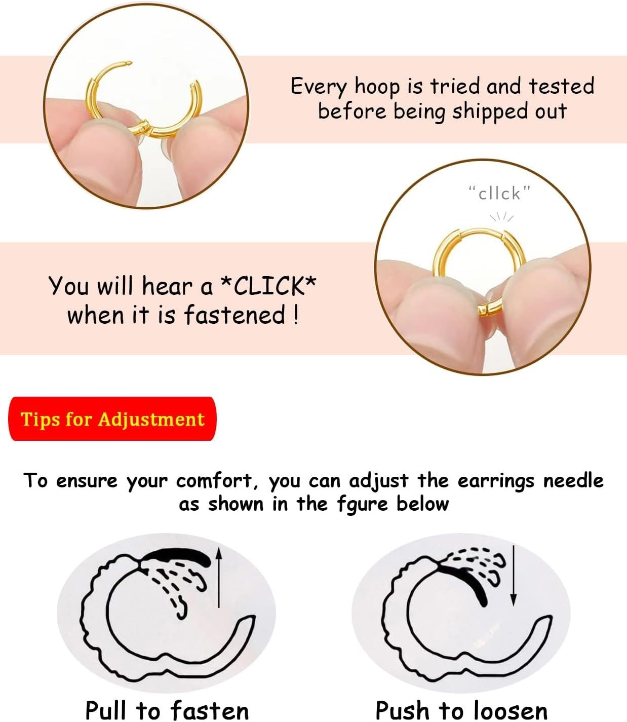 Lightweight 10mm Small Hoop Earrings - Durable Gold Plated Surgical Steel Design