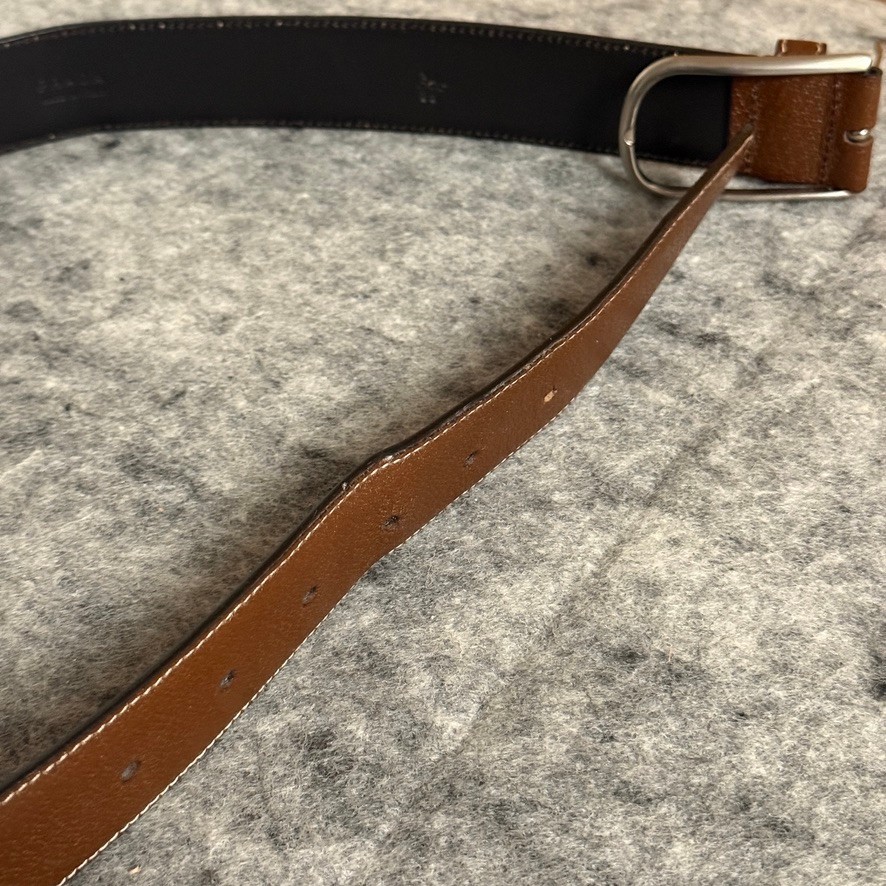 как выглядит Prada brown leather belt silver buckle size 34/85 made in Italy фото