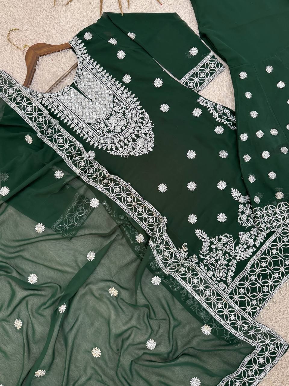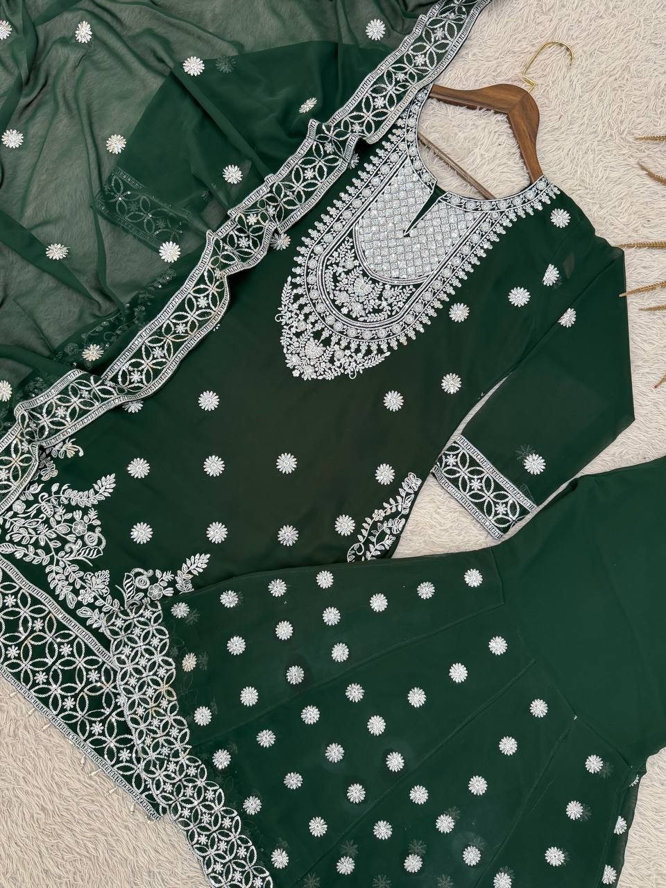 как выглядит Launching New Green Faux Georgette Kurta Palazzo With Dupatta For Women фото