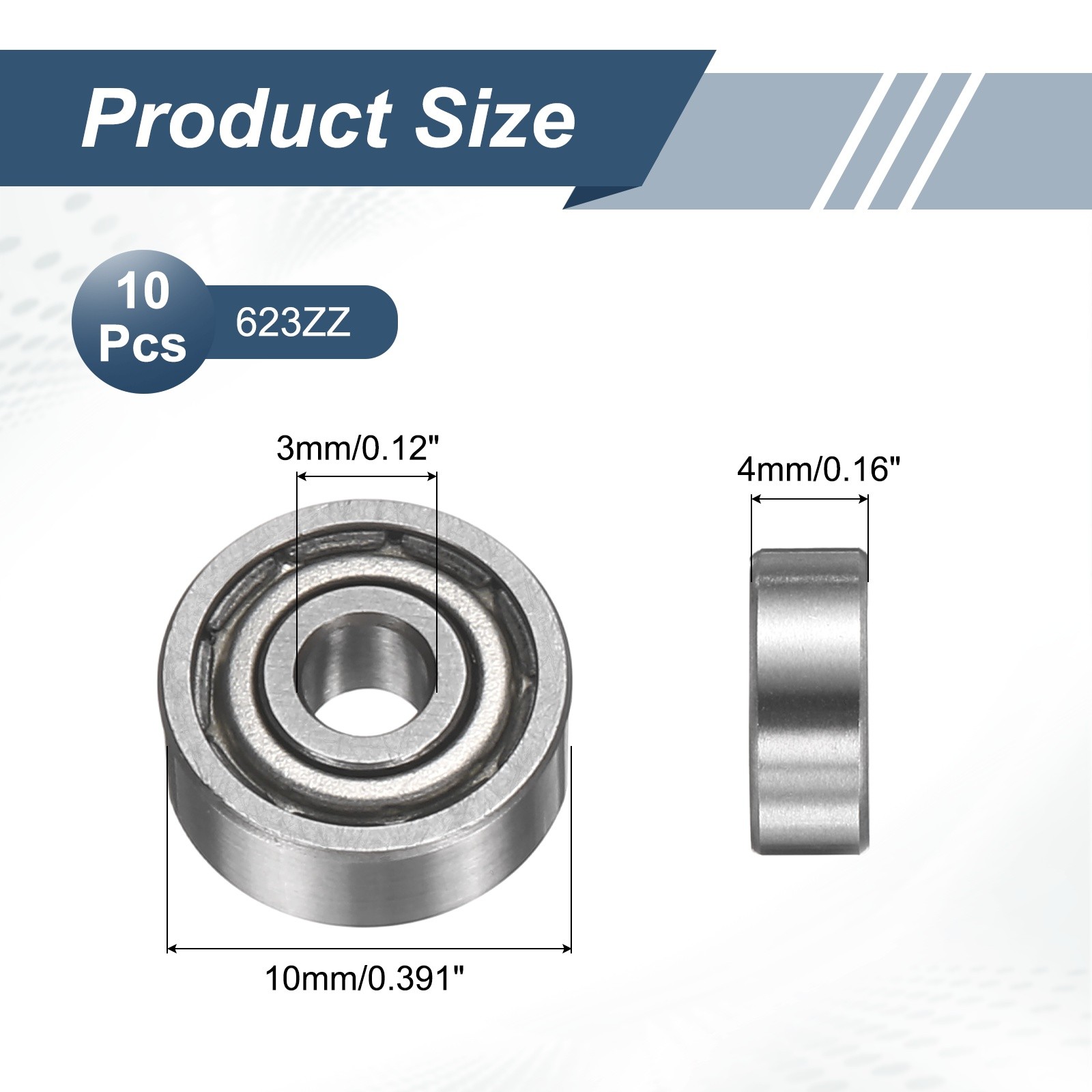 10 Pack 3 x 10 x 4mm 623ZZ Deep Groove Ball Bearings, ABEC5