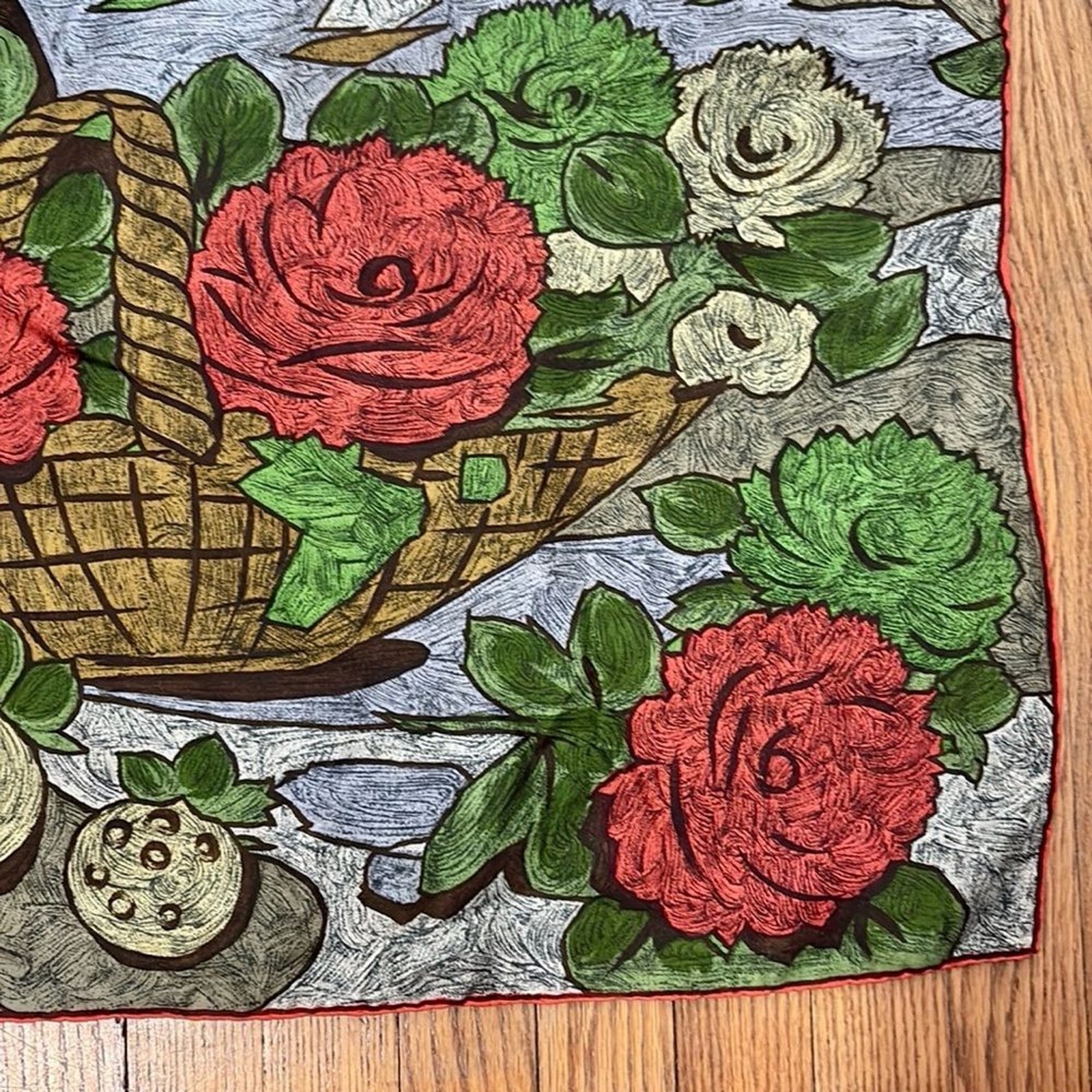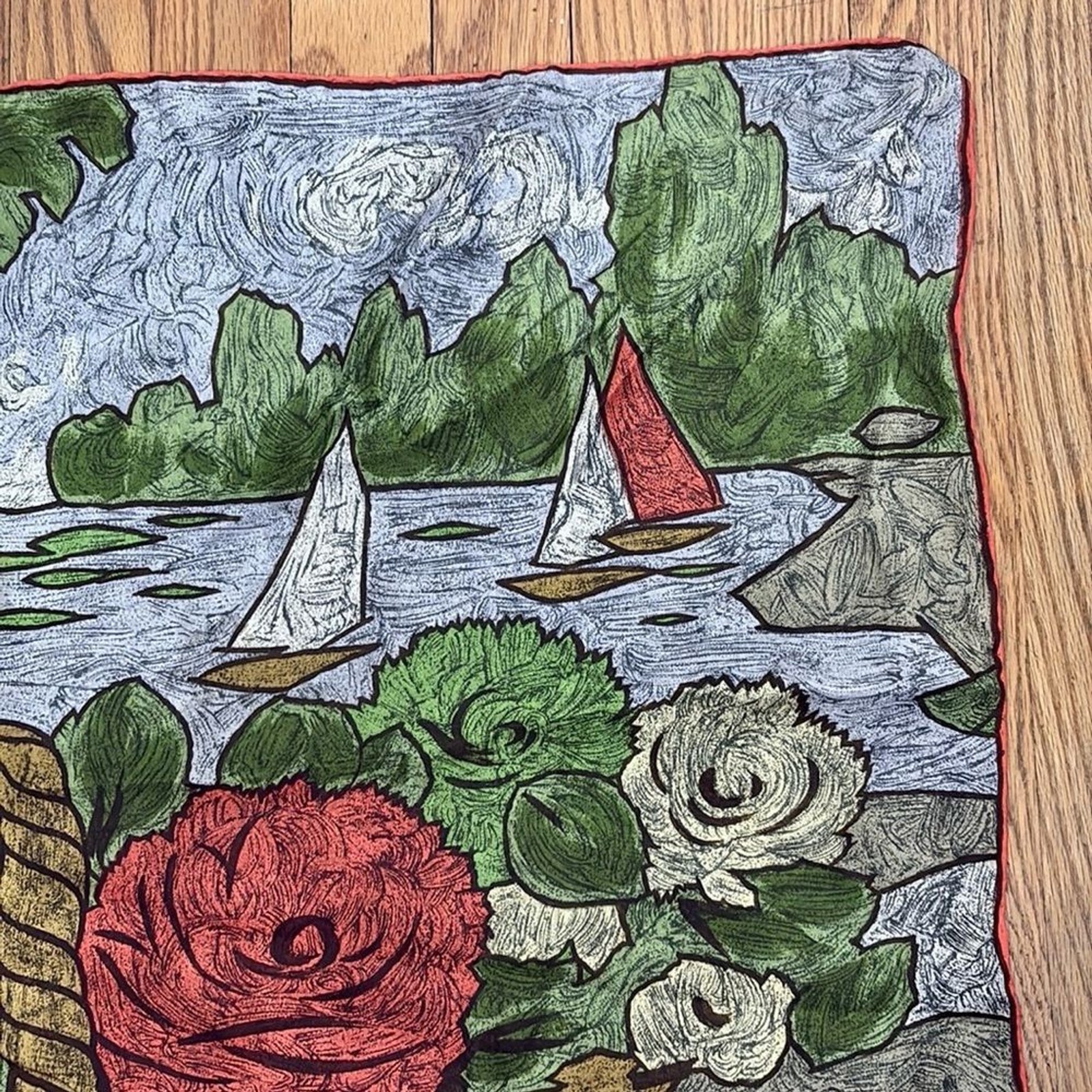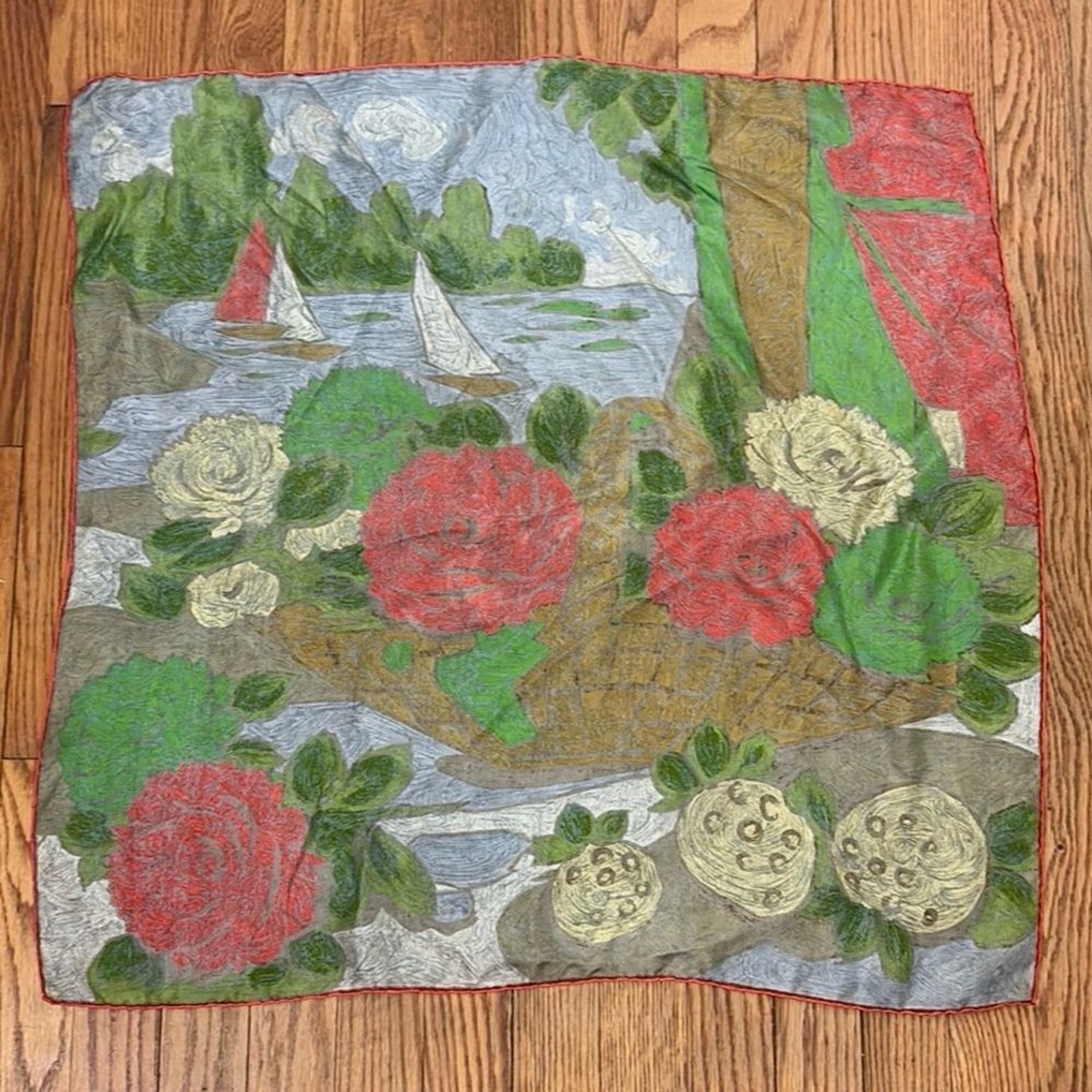 как выглядит Vibrant Landscape theme Silky Scarf Red Green фото