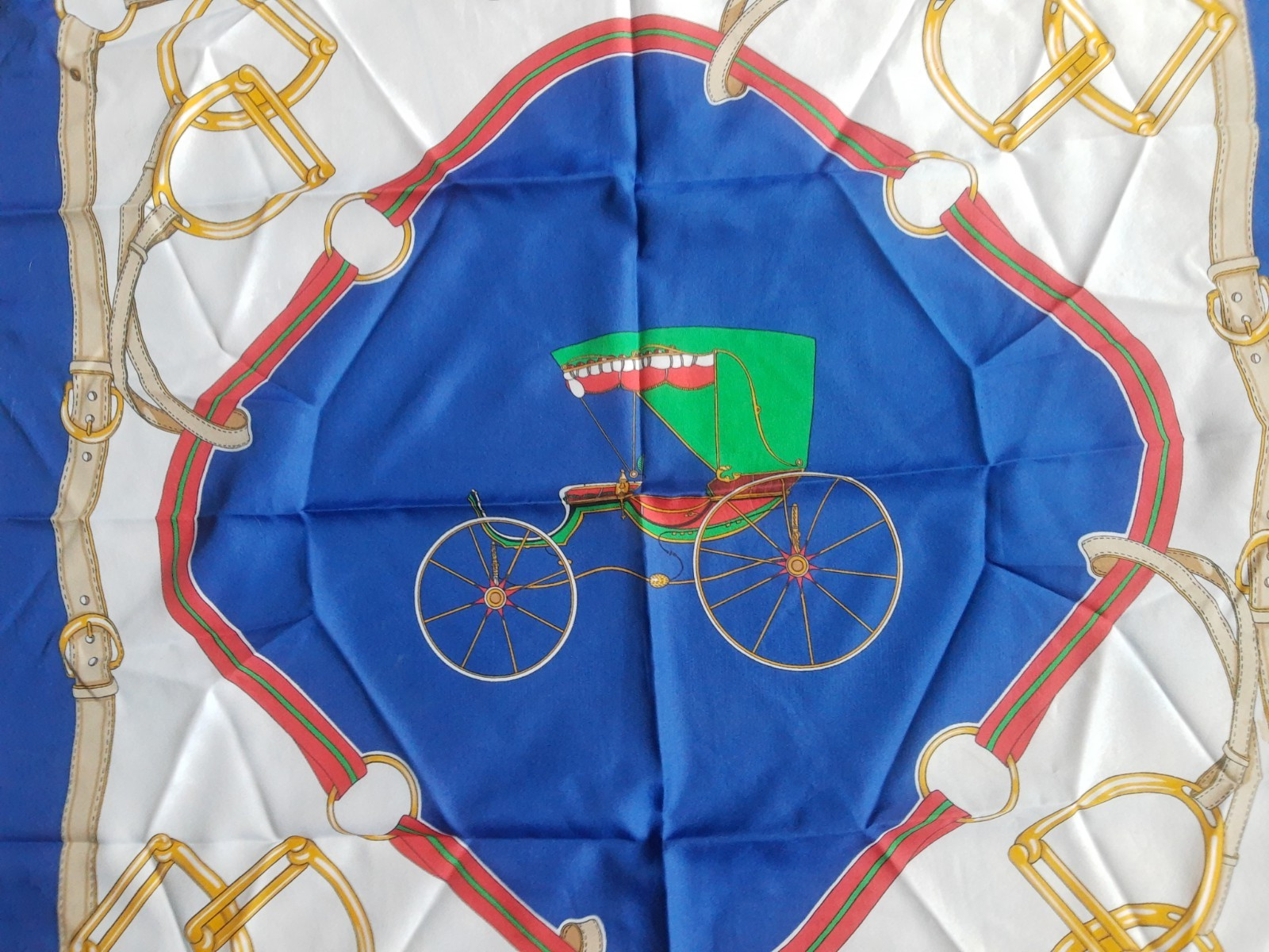 как выглядит Equestrian Themed Damart Laurent of France Blue Carriage Scarf Horse ca 1970s фото