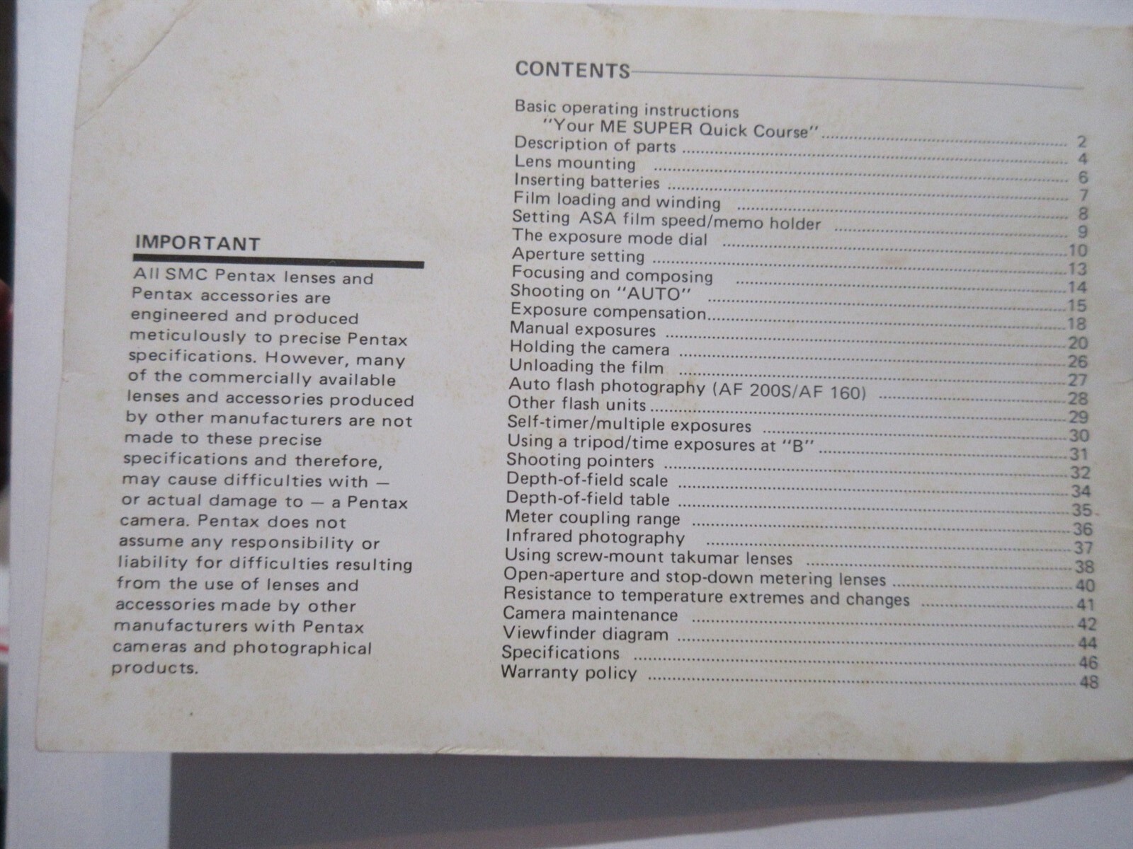 Vintage Pentax ME Super 35mm Film Camera 1984 Owners Manual Booklet Instructions