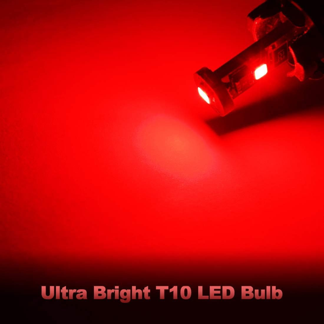 Red T10 LED Bulb Set CANbus 194 168 W5W Interior Map Dome Light Auto Use 10 Pack