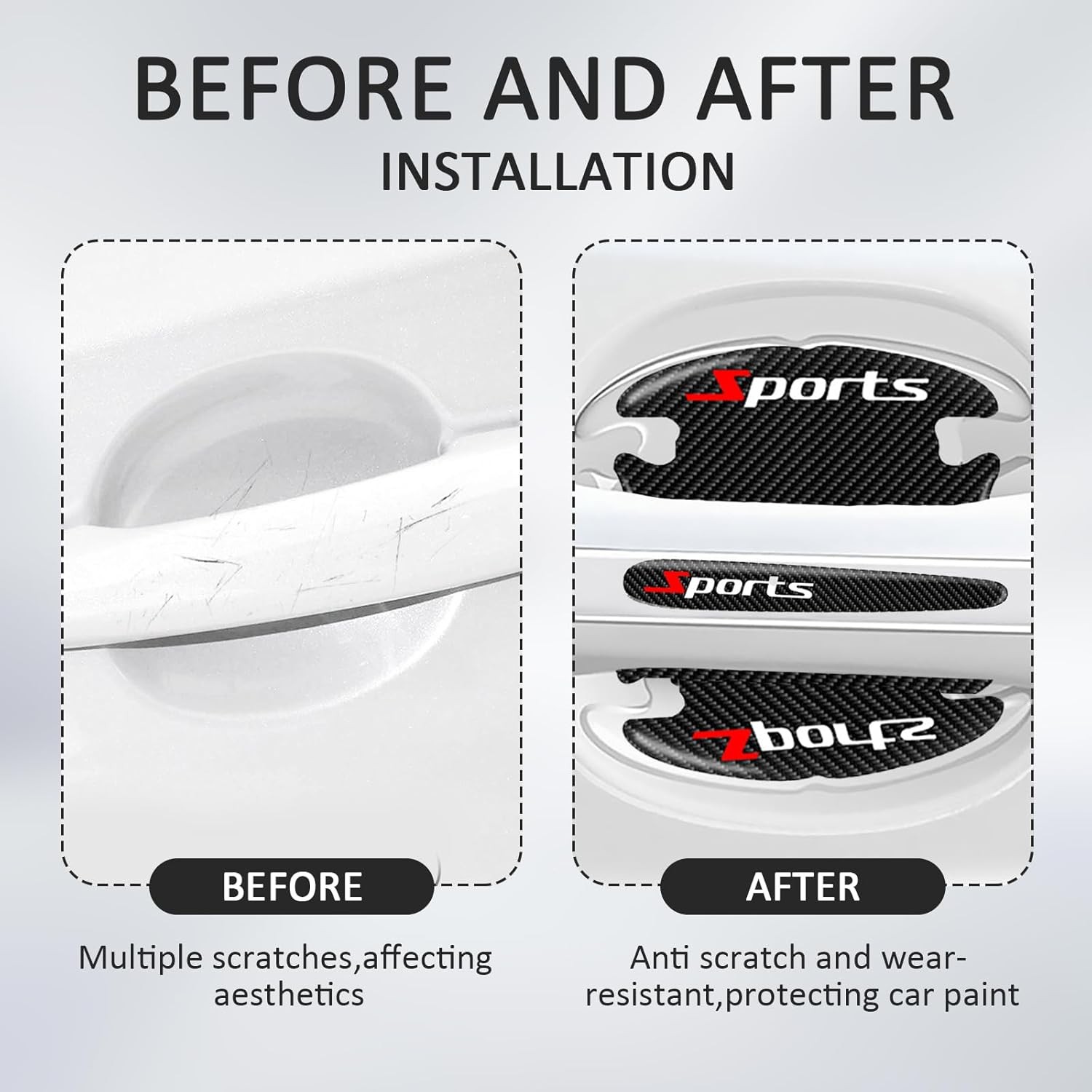 Car Door Handle Protector, 8 Pcs Door Protectors for Vehicles, Black, Door