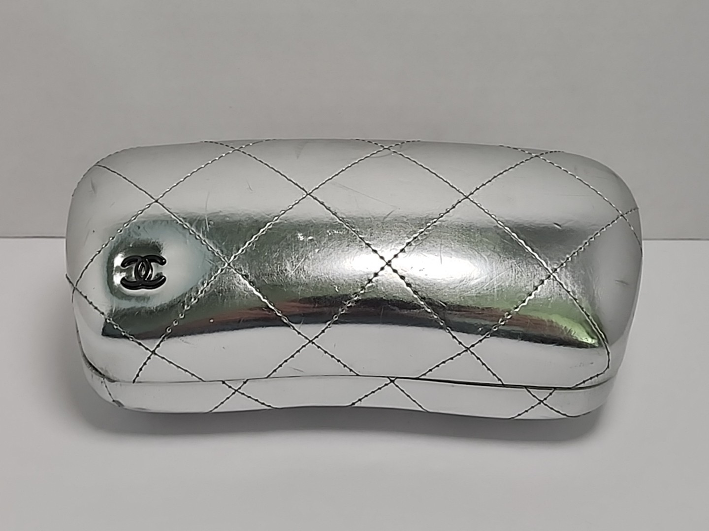 как выглядит RARE Vintage 2000s CHANEL Silver Metallic Quilted CC Logo Glasses Case Y2K... фото