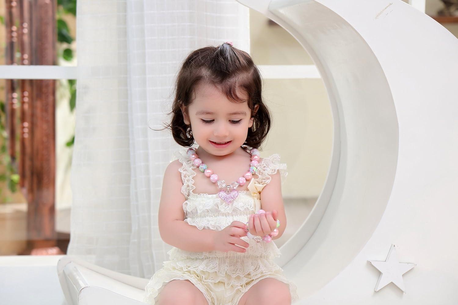 Girls Gilitter Heart Chunky Bubblegum Bead Necklace Bracelet Set Fashion Jewel