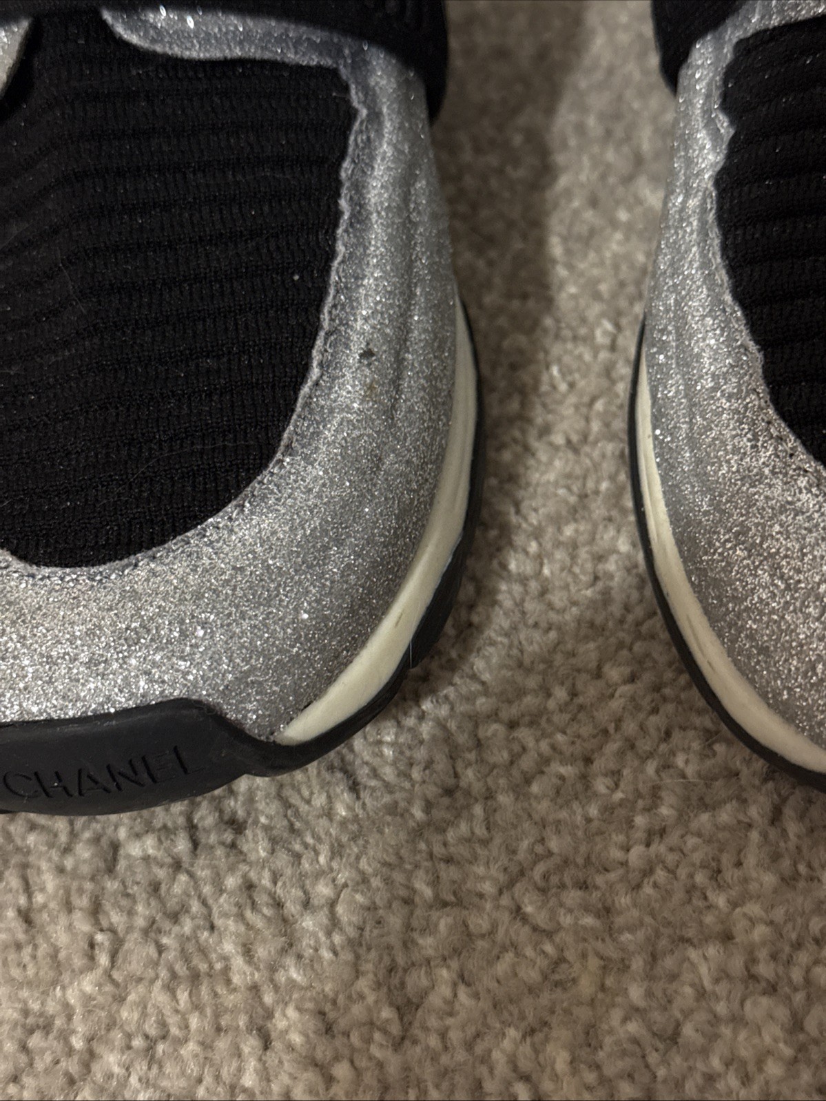 CHANEL Glitter Stretch Fabric CC Sock Sneakers size 38