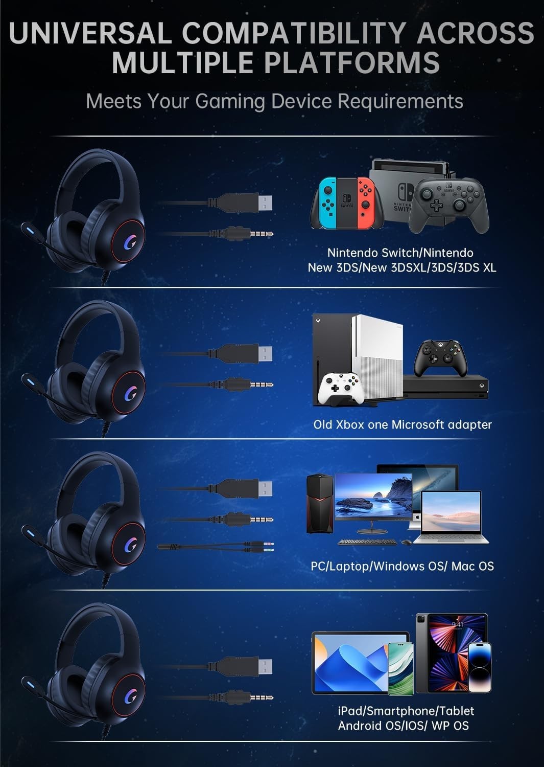 Особенности: Noise Cancellation, 7.1 Surround Sound, Dynamic RGB Lighting, Volume Control, Noise Isolation, Adjustable Headband, Lightweight