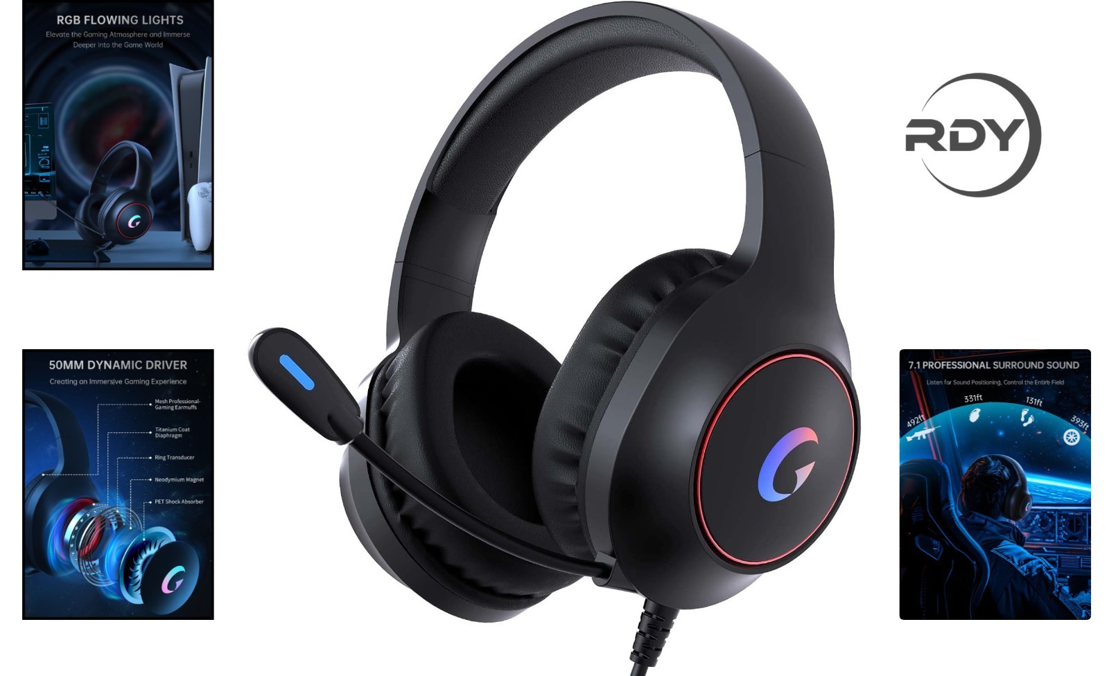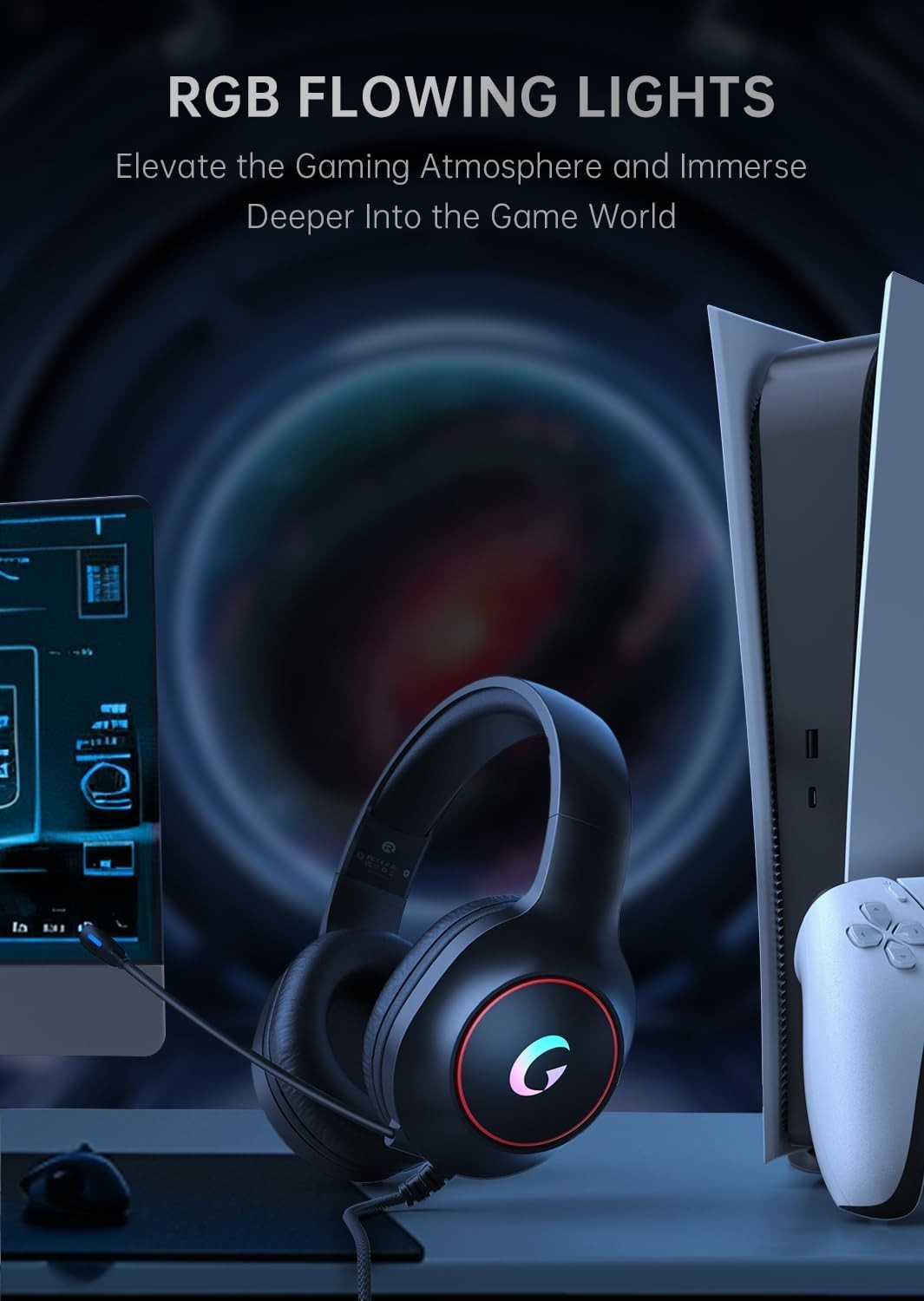 Ultimate Gaming Headset with ENC Mic - 50MM Drivers RGB Lighting for PS5/Xbox