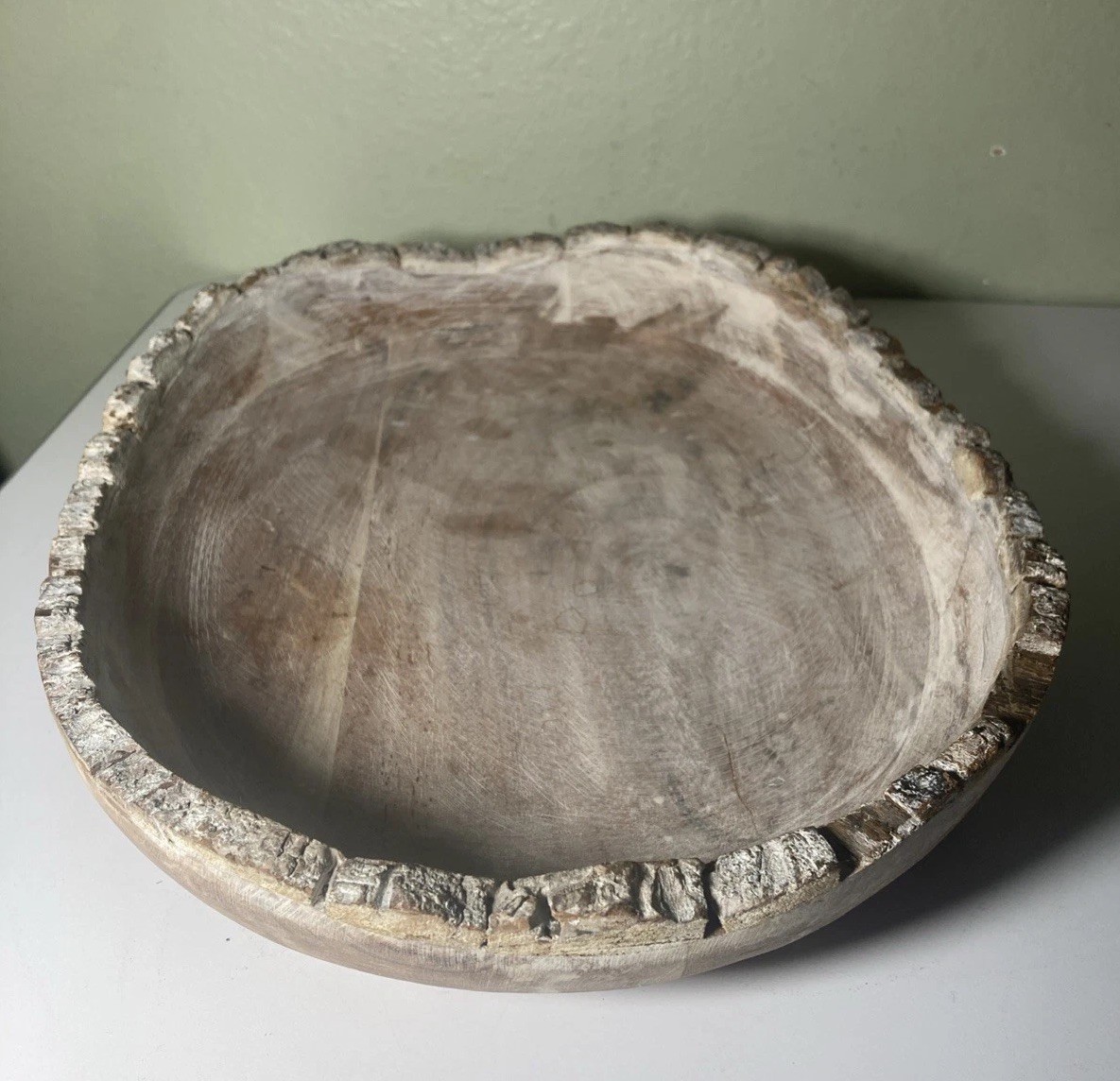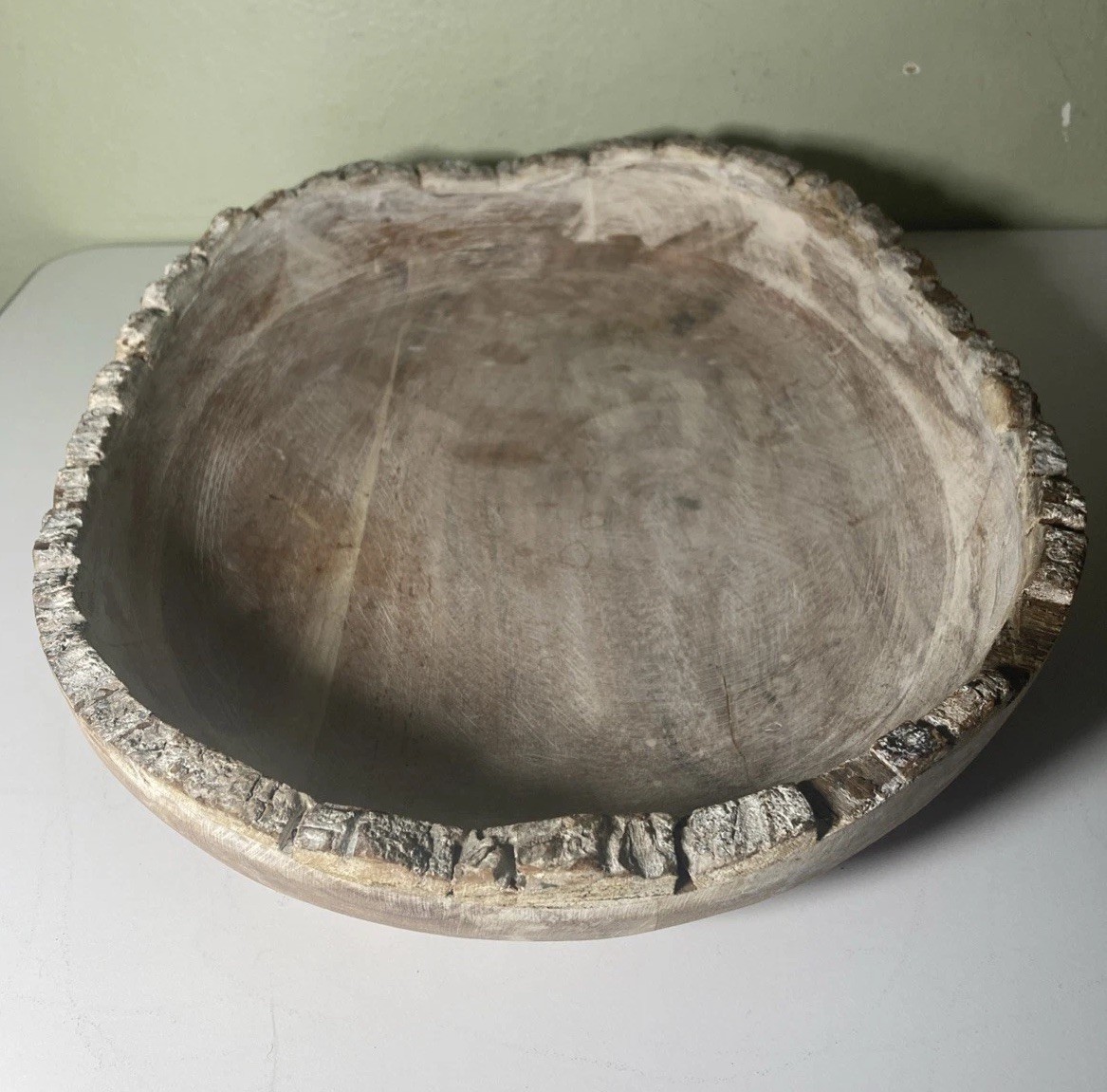 как выглядит Rustic Hand-Carved Wooden Bowl with Natural Edge Farmhouse Decor Centerpiece фото
