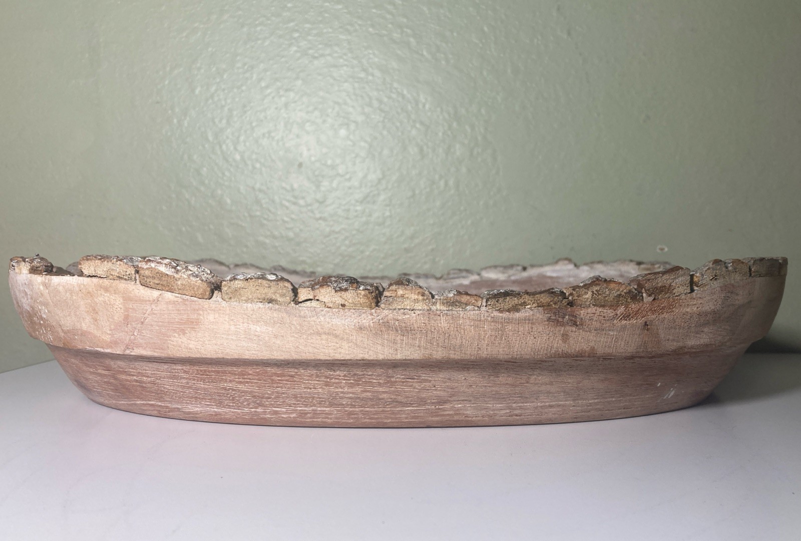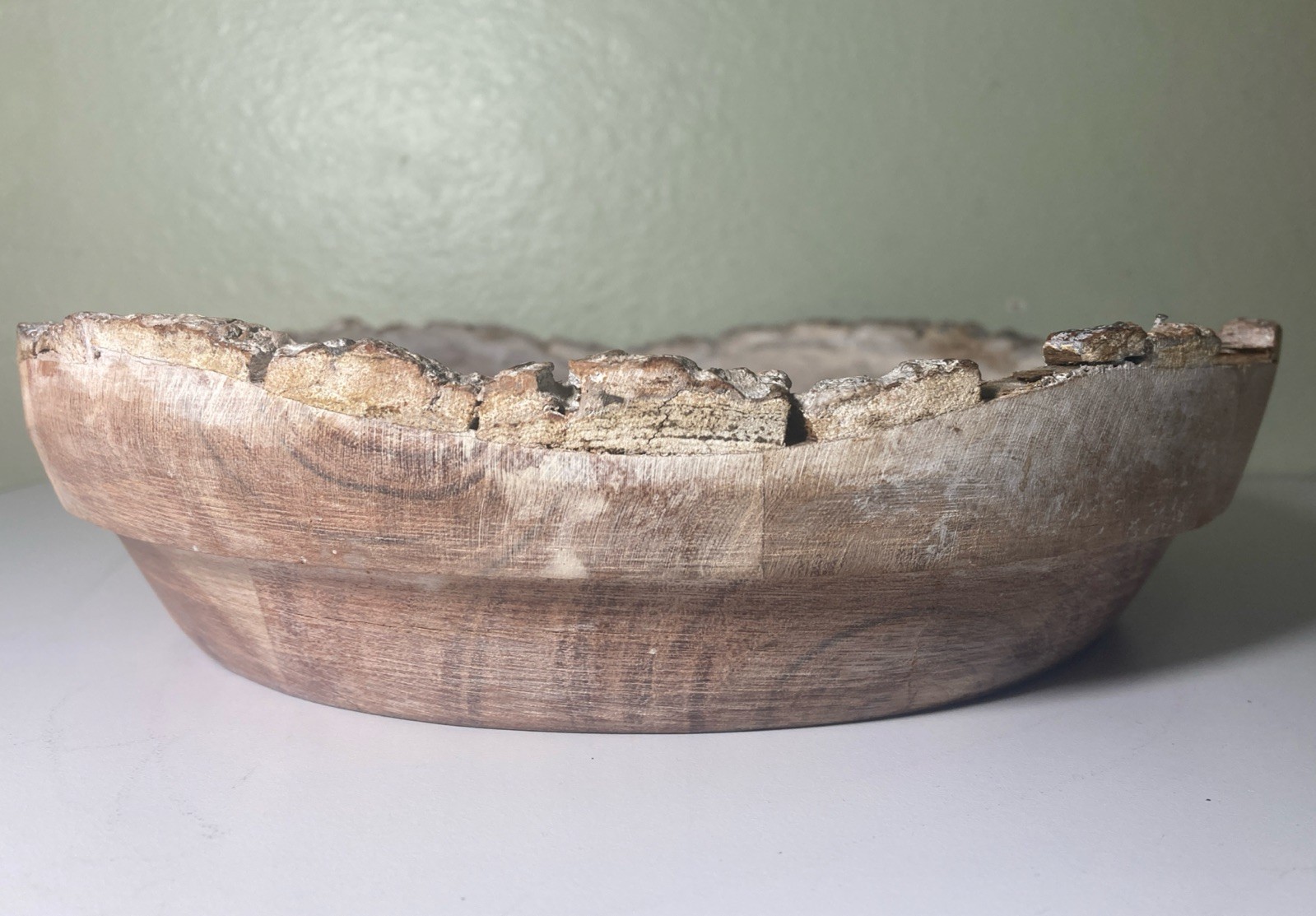 • Rustic Hand-Carved Wooden Bowl with Natural Edge Farmhouse Decor Centerpiece
