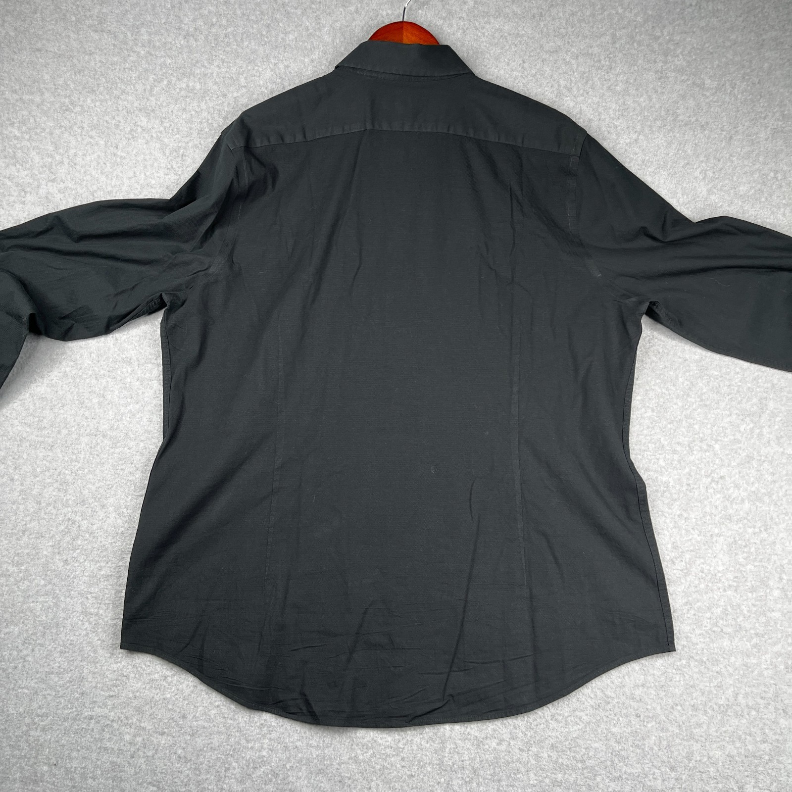 как выглядит Express Fitted Shirt XL Black Classic Textured Button Up Long Sleeve Mens фото