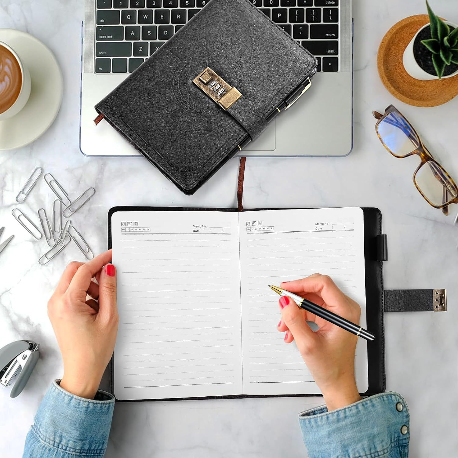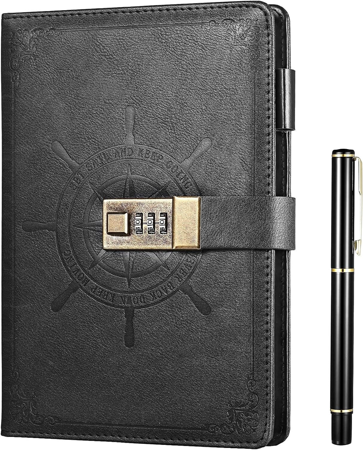 как выглядит Black Journal with Lock, Refillable Faux Leather Lock Diary Notebooks Planner Or фото
