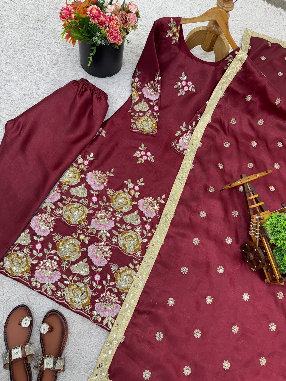 Indian Look Maroon Organza Poly Silk Salwar Kameez With Dupatta For Function